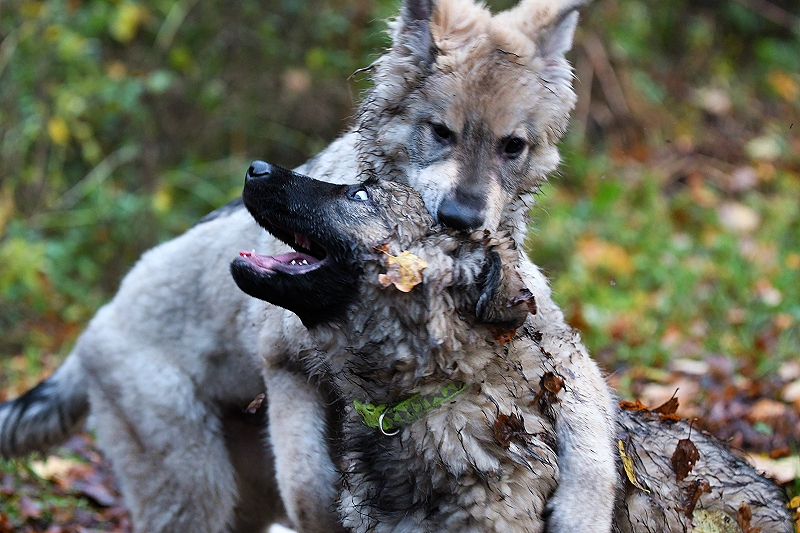 ![]() Das Wetter hat ebenfalls kein Wohlfühlfaktor. Die beiden Hunde rempeln ein wenig miteinander und Blue, deutlich kleiner und leichter als Maniac muss hinterher in eine Hundewaschstraße ....... ;-) |