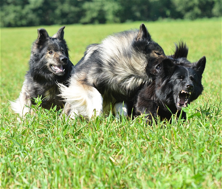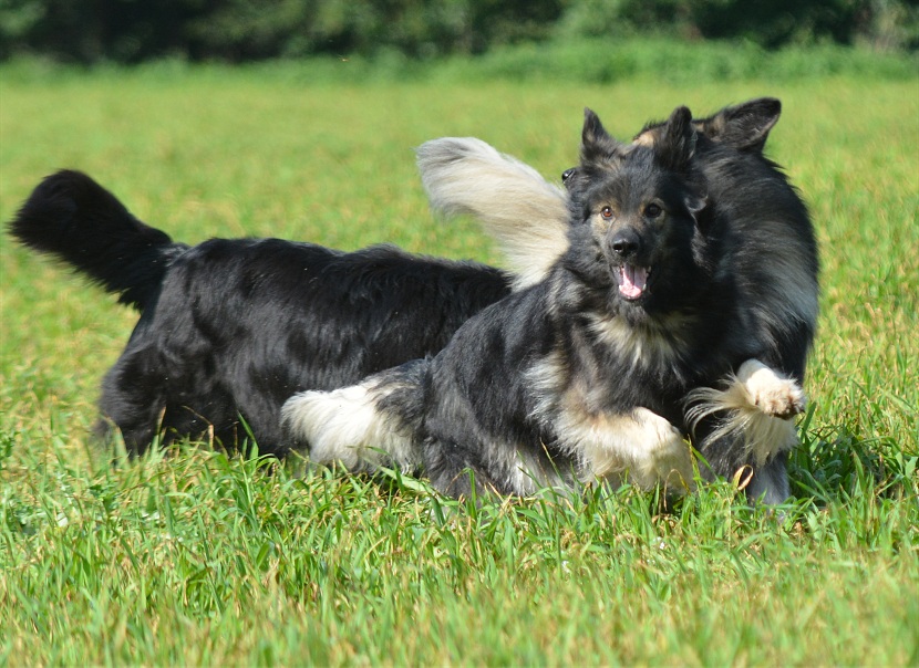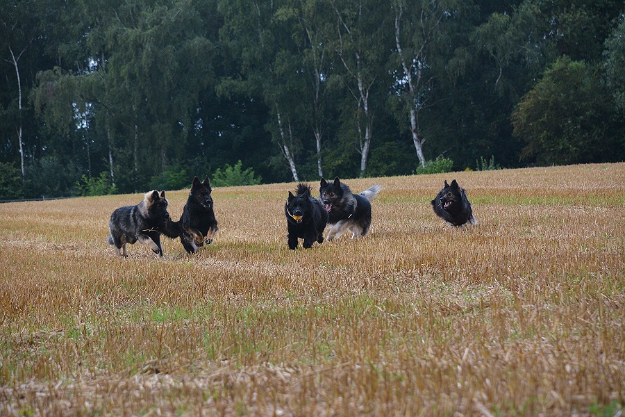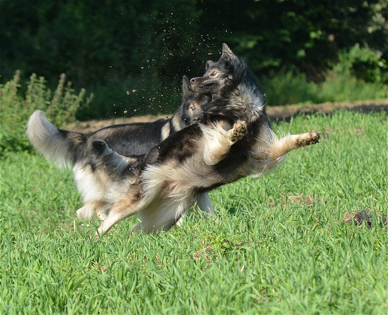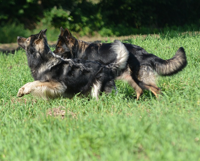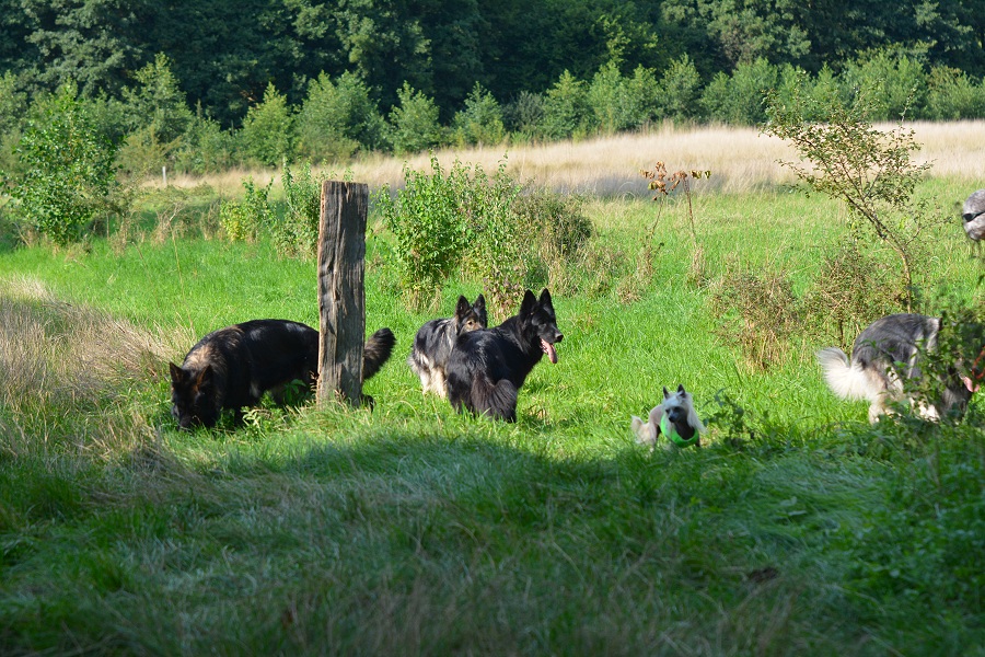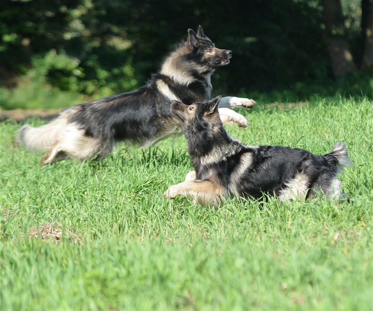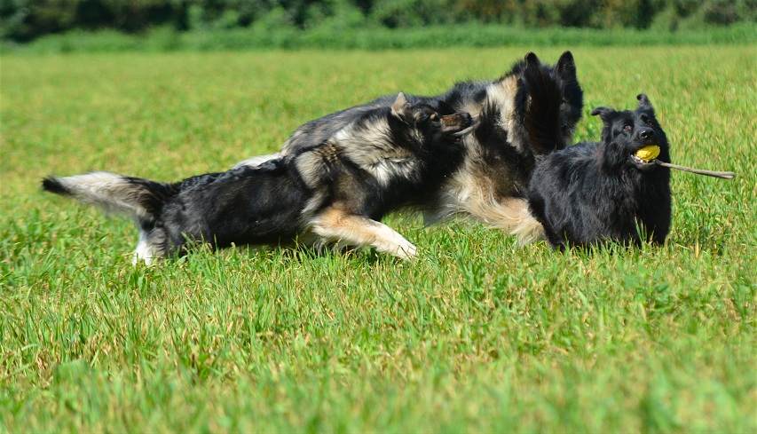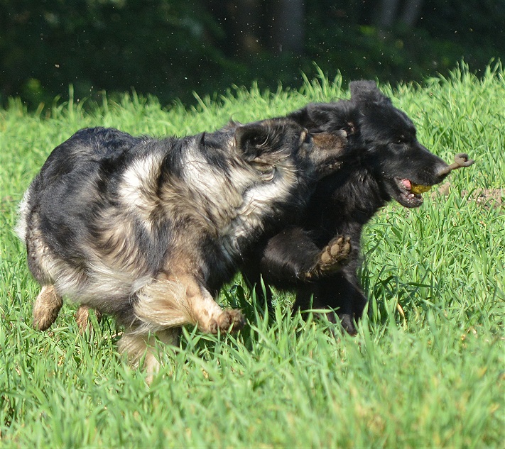 Zuhause angekommen, sind die Hunde noch lange nicht fertig mit herumtollen.