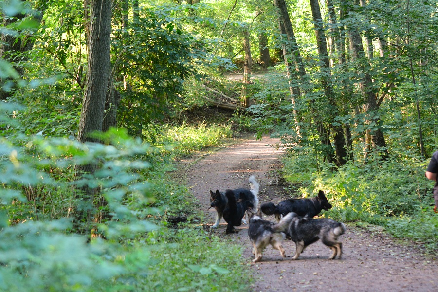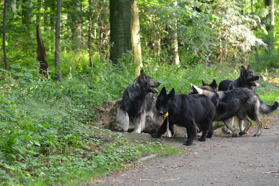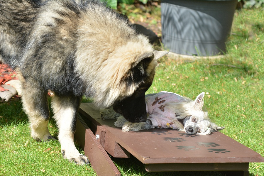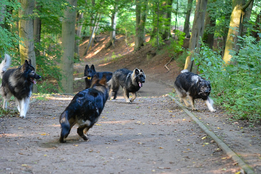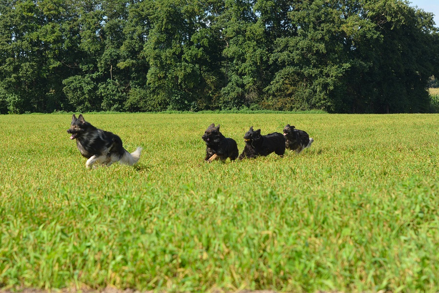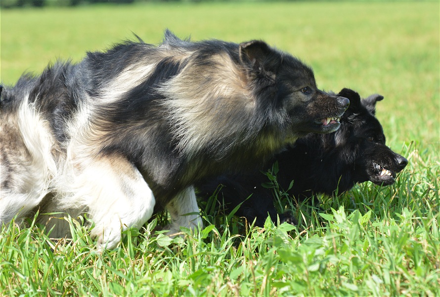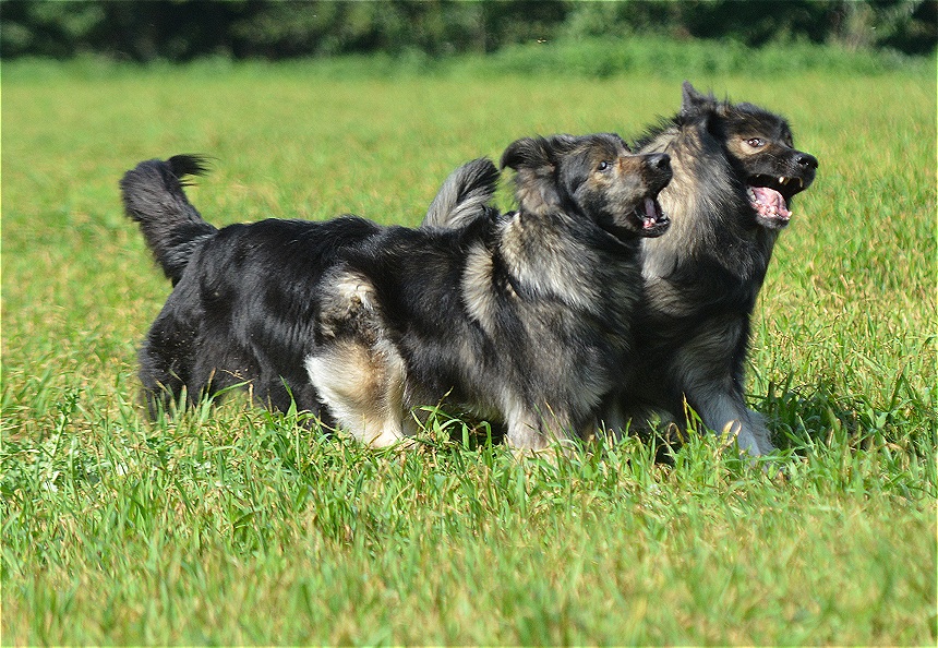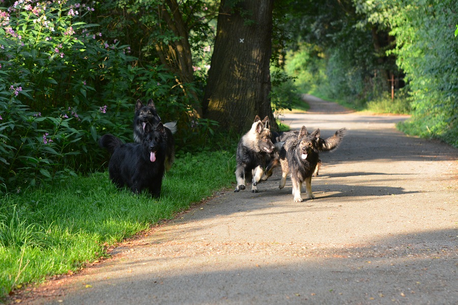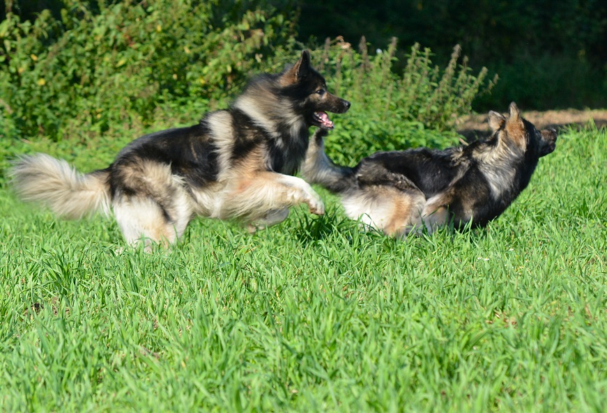 Zuhause angekommen, sind die Hunde noch lange nicht fertig mit herumtollen.