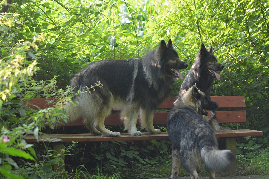 Die Hunde, die nehmen wir auf unseren Ausflügen mit, genauer gesagt..