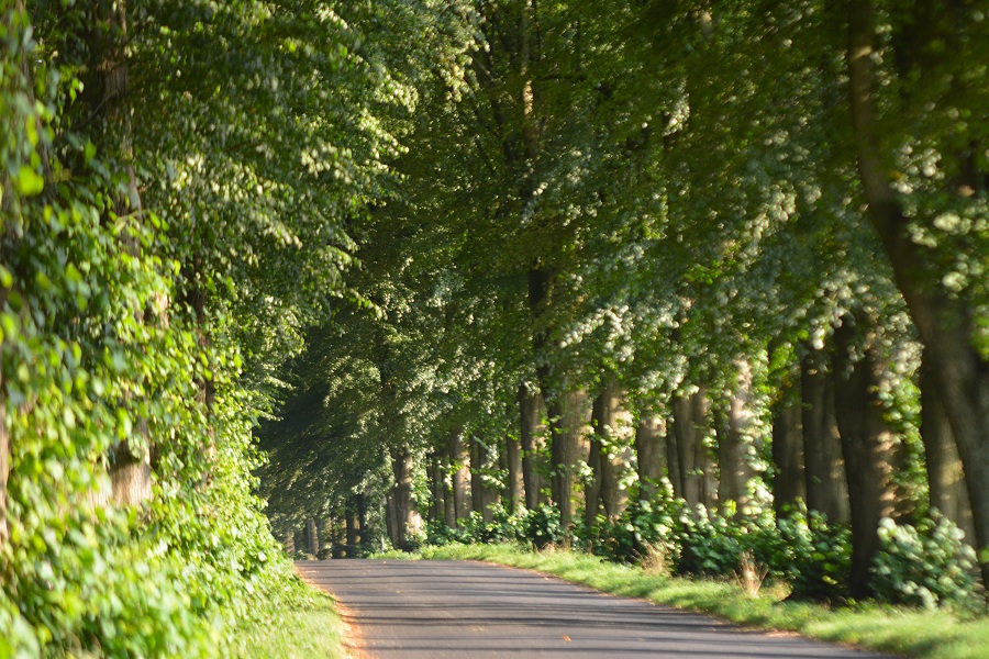 Eine kleine asphaltierte Straße, bequem zu laufen, sie führt in die umliegenden Felder