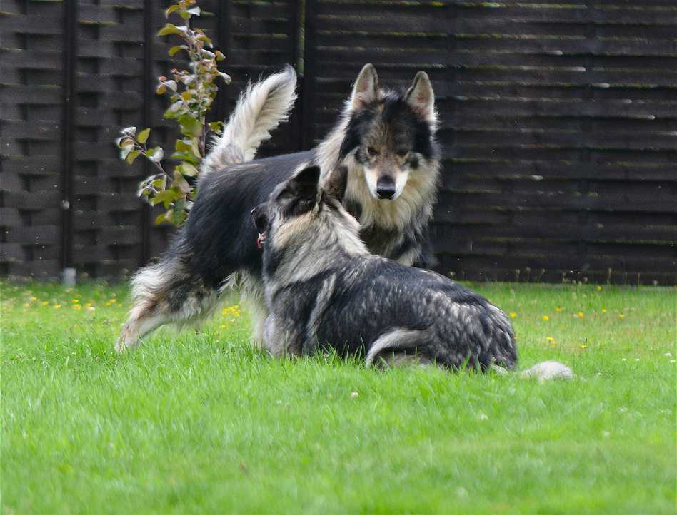 Wenn er nicht das bisschen "Helle" am Fang hätte wäre es ein Ebenbild von Nathan. Mein Dank geht an Nina, der kleine ist völlig easy und kennt bereits alles. Er fährt mit den anderen gerne und selbstverständlich im Auto mit. Er lässt, bis auf ein paar neugierausrutscher.. die Katzen in Ruhe. Bewegt sich im Haus und im Garten, sowie auf kleineren Spaziergängen, völlig selbstsicher ... eben als wäre er immer hier gewesen.