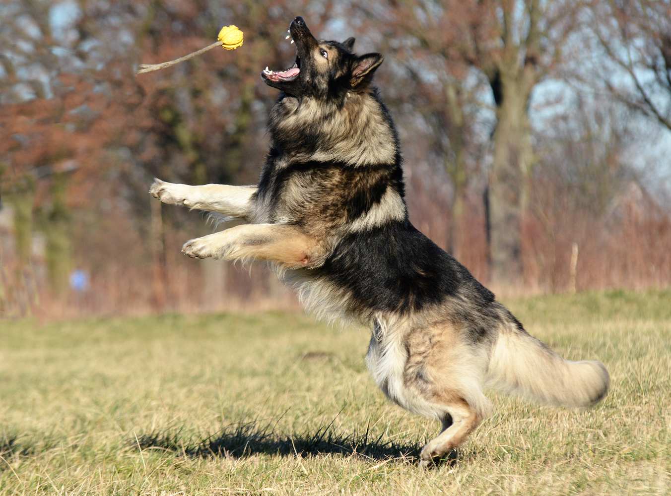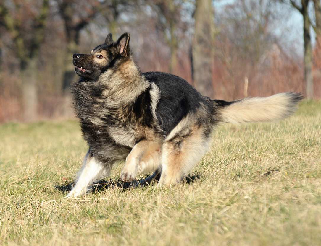 Er ist nicht so gedunkelt, nur die Haare sind länger und die Haarspitzen bei jedem grauen Hund sind schwarz. Wenn das Haar dann lang genug ist und die Haarenden geschlossene schwarze Haarspitzen haben, sieht es oft aus wie eine komplett schwarze Decke. Das ist aber weiß Gott nicht der Fall, sondern nur die langen Haare sind am Ende alle schwarz, und vermitteln dann diesen falschen Eindruck.