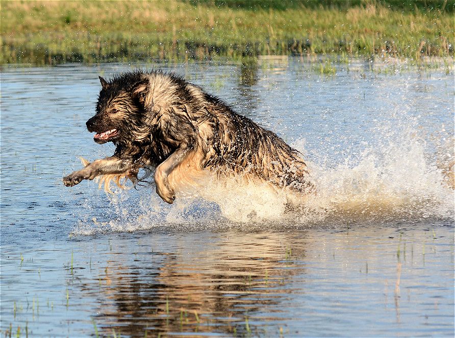 Ich befürchte auf unserem Sommerfest, werden alle unsere Hunde "nackt" sein. Das ist immer so, je mehr die Hunde im Wasser umhertoben, umso mehr schmeißen sie alle Haare ab. Es ist warm und das Wasser führt dazu das sie kein Fell mehr brauchen. Noch hat er Haare.. ne menge, aber ich denke in ein paar Wochen ... dann ist er komplett abgehaart.