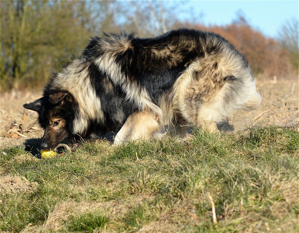 die Bälle getragen und natürlich die Leinen, die waren auch in der Tasche verstaut. Irgendwie hatte ich das Gefühl das ihm das mit der Zeit zu warm wurde, und nahm ihm nach ca 4 Kilometern die Tasche ab.... und machte sie Bär zum Tragen um. Nazar stand während des umziehens dabei und guckte mich an. Nachdem ich Bär die Tasche umgeschnallt hatte, gingen wir weiter. Kurz danach drehte ich mich um, um zu sehen warum die Hunde nicht kommen.? Nazar hatte Bär an der Tasche gefasst und hielt ihn fest... Sandra die ebenfalls mit war, verbot Nazar spontan das "Festhalten".... Nazar ließ los und wir gingen weiter, Bär sprang lustig um uns herum. Ich drehte mich um und sah Nazar der immer noch am selben Fleck stand und uns ansah! Nun wollte ich wissen was weiter passiert, wenn man nichts macht ...... drehte mich um und ging einfach mal weiter. und.... was denkt ihr?? Was ist passiert, habt ihr ne Idee.... Verblüffend sage ich euch....