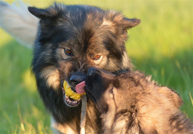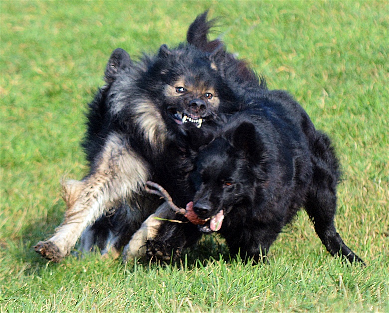 zu bleiben, weil sein Hund inzwischen tatsächlich angefangen hat böse umeinander zu schnappen.