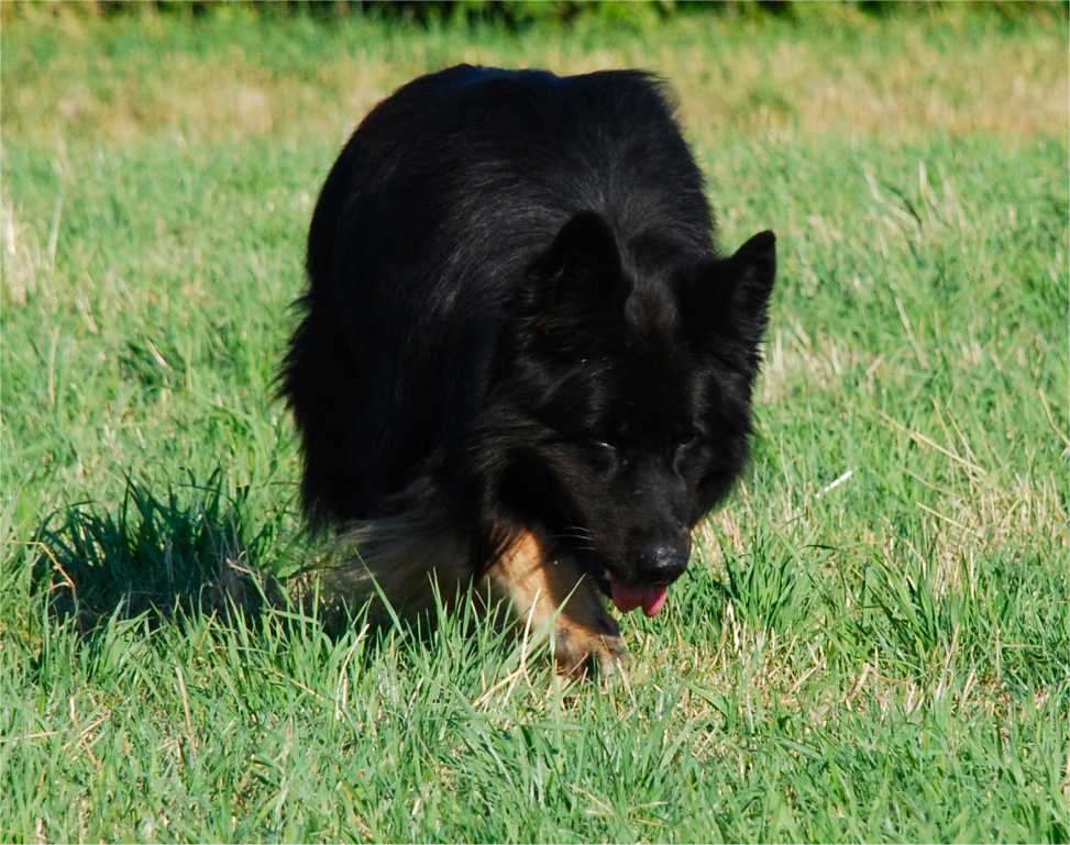 Alle Hündinnen sind zur Zeit in der Hitze und er hat mächtig zu tun, den ganzen Tag im Garten rauf und runter zu rennen.. Bloß ja nicht das er irgendwas verpasst :-) Ich hab schon gesagt, wenn die "Weiber" aus der Hitze sind, dann hat der "alte" Muskelkater von den Fußspitzen bis zu den Ohren :-))
