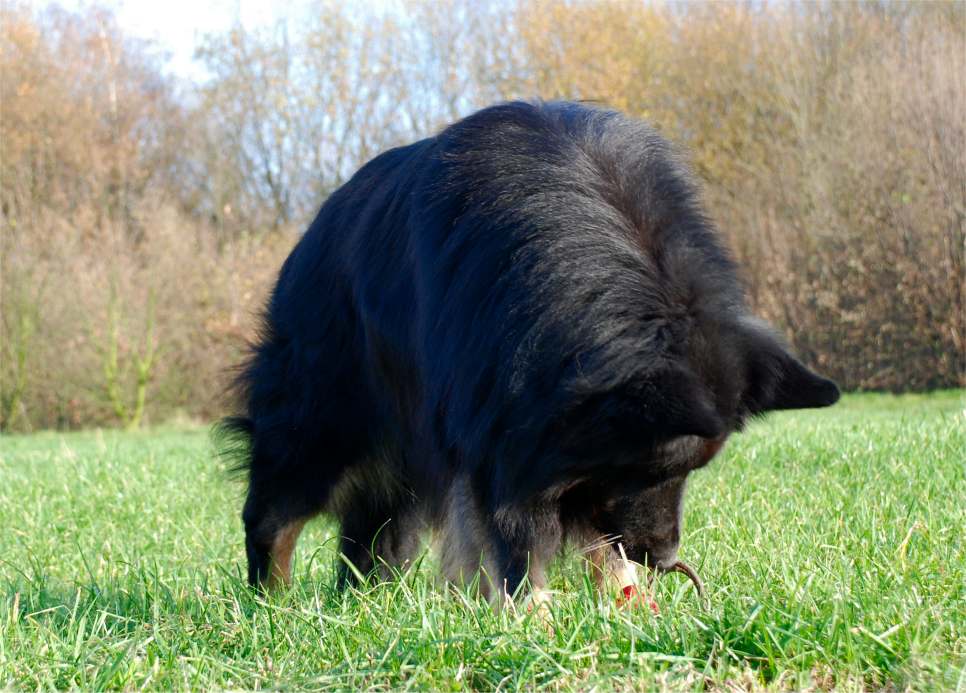 Das er nun in seinem mehr als fortgeschrittenen Alter, Herztabletten und auch ein Schilddrüsenmedikament bekommt, habe ich sicherlich schon erwähnt. Ich denke man sollte auch ruhig mal erwähnen, das ein alter Hund Sorgen macht und auch der eine oder andere TA Besuch außer der Reihe fällig wird. Im Sommer dachte ich schon, das Niko den Winter nicht mehr erlebt, er schlief nur noch und ich bemerkte das er schlechter Luft bekam. Natürlich dachte ich sofort an ein Tumoröses Geschehen, in seinem Alter wäre es ja durchaus denkbar gewesen, aber ich hatte da, Gott sei Dank, ... unrecht! Die Herztabletten die er nun täglich bekommt, einfach um das alte Herz zu unterstützen und die Stoffwechseltabletten bekommen ihm gut, und er geht wieder gerne spazieren, sogar ein bisschen rennen ist noch drin. Ball spielen will er auch immer noch, und Chakana hält ihn fit. Sie ärgert ihn und er muss dann einfach hinterher rennen :-)