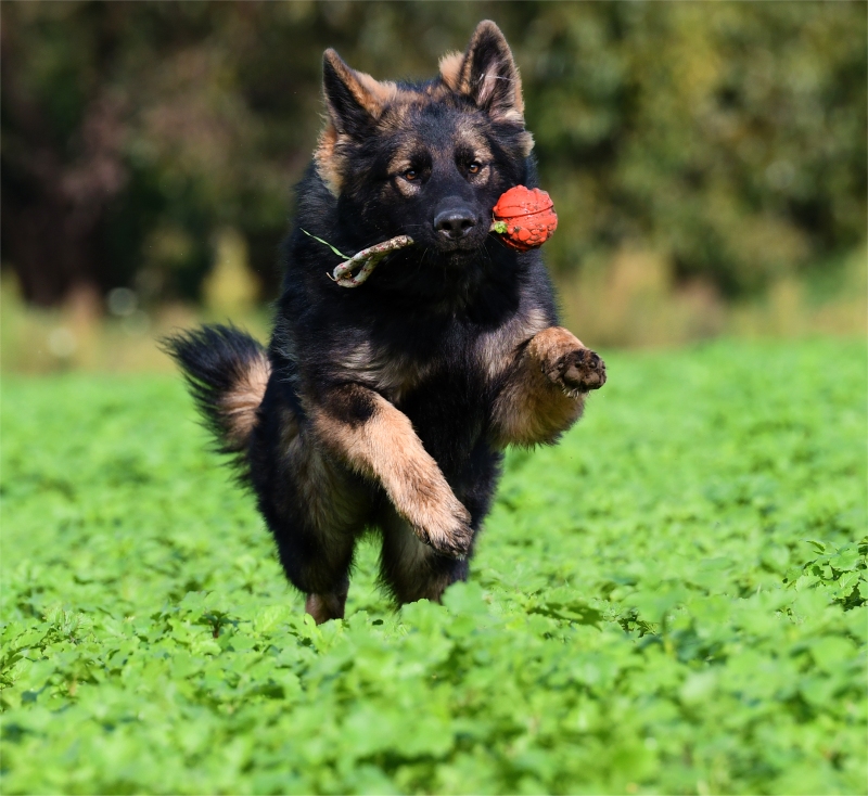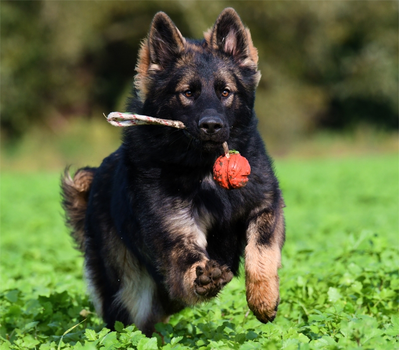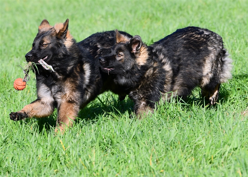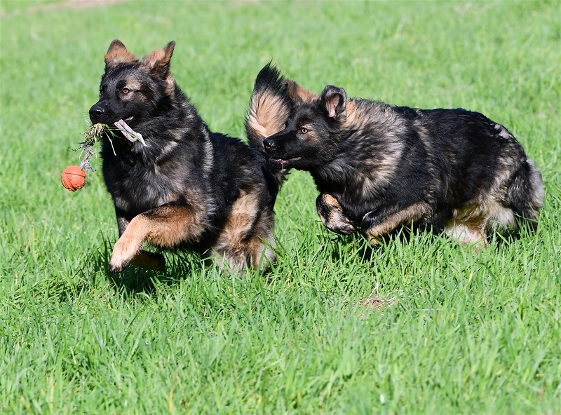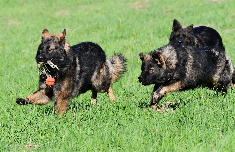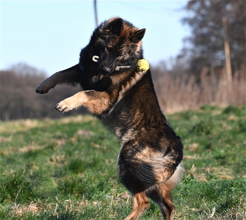![]() Das sind nun die allerneuesten Fotos von ihr. sie hat das Hopsen von ihrer Mutter vererbt bekommen, aber auch das will to please von ihrem Vater Nazar. Ihre Farbe wird immer intensiver und sie kann sich sehr schön darstellen. Ninja ist kein Hund der zanken will, ist eher eine liebenswerte und freundliche und vor allen Dingen spielfreudiger Hund. Latoya sieht das gar nicht so gerne das Ninja nun auch den Ball haben möchte. |