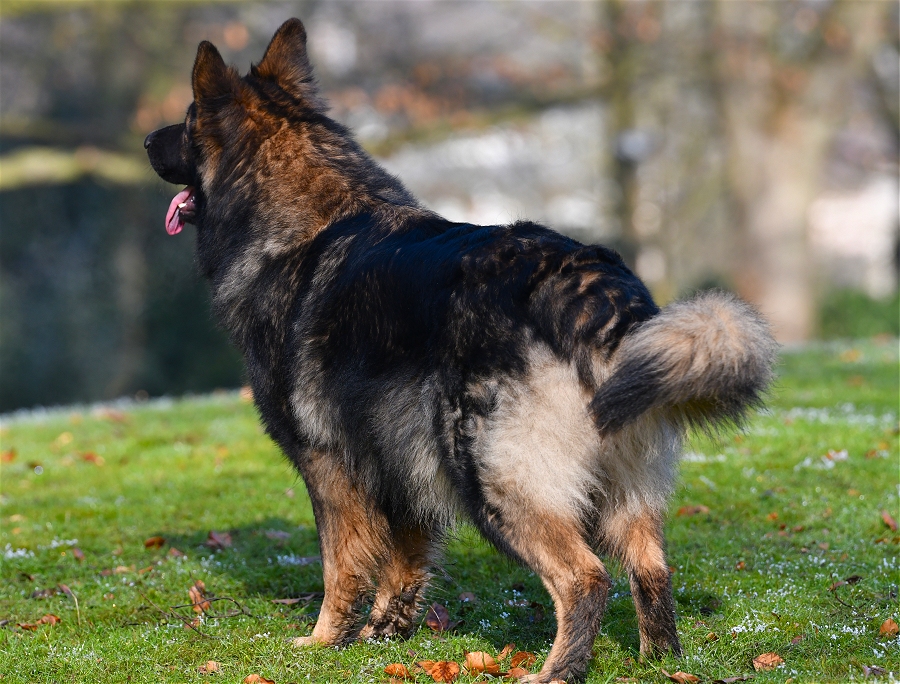 eigentliche Fellfarbe, sie ist leuchtend und hat ein intensives Farbspektrum. Man sieht Hunde in dieser Farbvielfalt wirklich eher selten. Genauer habe ich eigentlich schon lange keine solche Farbe mehr gesehen. Je älter ein altdeutscher Schäferhund wird umso länger wird das Fell. und dann passiert, was die wenigstens Menschen heute sehen. |