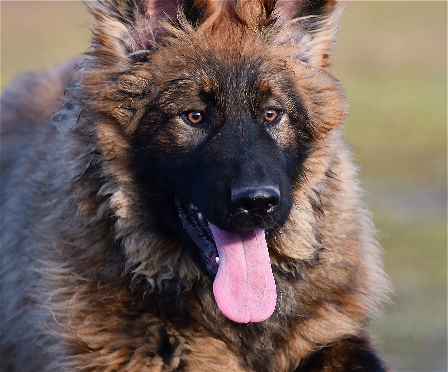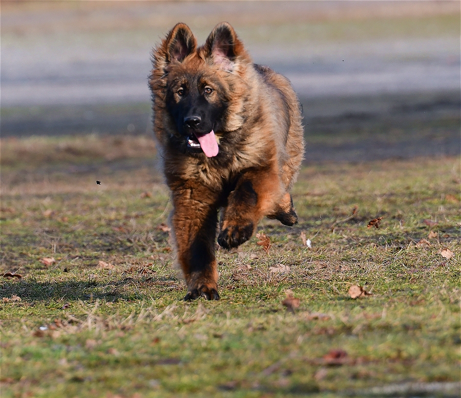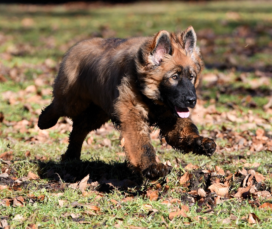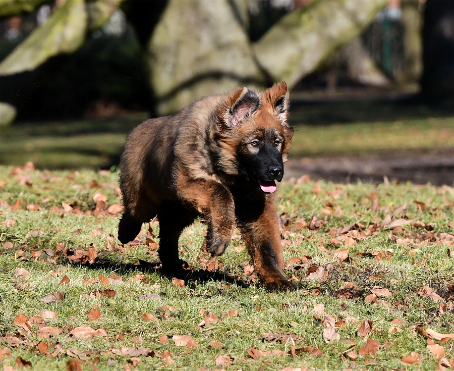 sich seinen Weg durchs Leben mit einer Portion Sturheit und ein großes Stück Unverschämtheit. Inzwischen hat er sich ein wenig an unsere Mentalität gewöhnt und will nicht mehr so ganz und unbedingt mit dem Kopf durch die Wand. Aber am Anfang war ganz schön von sich überzeugt. Er hatte vor nichts Respekt und unsere Mädels ließen ihn auch noch gewähren das er sich aufführte wie der Pascha von wasweißich.! Selbst Diego hat ihn nicht gemaßregelt, er durfte ohne Repressalien auf ihm herum hüpfen und Diego ließ ihn. Nun denn... Im Haus klaute er alles was nicht angebunden war, Teller auf dem Tisch, ein Ding der Unmöglichkeit. Es sei denn man wollte Hund zum Mittagessen. So nach und nach arbeiteten wir an seinen Tischmanieren und irgendwie haben es die Mädels geschafft das er sie nicht mehr unablässig als Trampolin benutzte. Diego knurrt ihn bei seinen übergriffen zwar an, aber mehr passiert nicht, egal wie Sarthor sich gerade aufführt und auf Diego rumspringt. Anscheinend hat er absolute Narrenfreiheit bei der Pantherbrigade. Mal sehen wann und ob sich das ändert. |