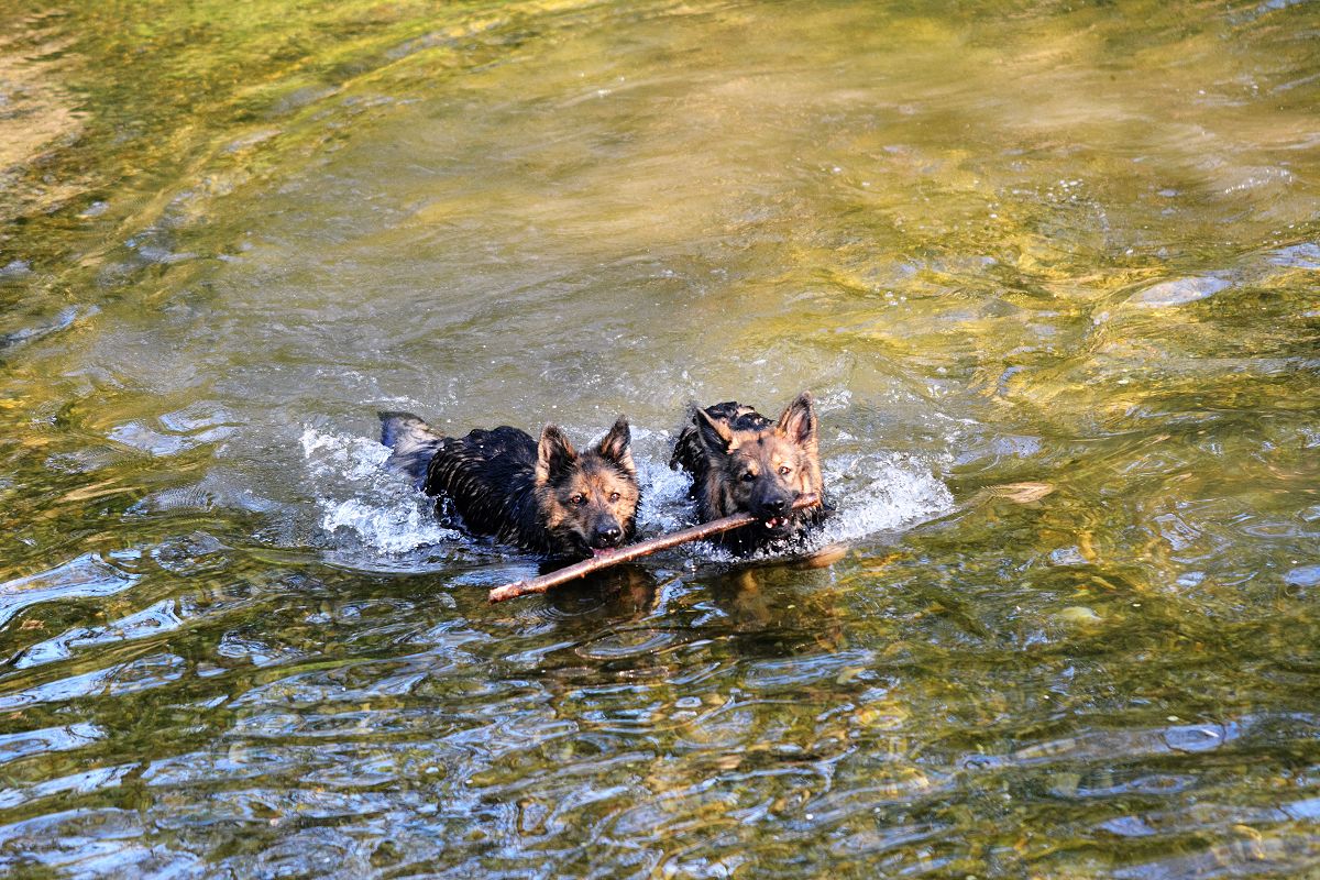 Nachdem wir die Schweiz verlassen hatten fuhren wir nach Süssen. Besuchten dort Uwe und Anja. Und wie kann es anders sein, Djuna und Aliki eine Tochter von Grizzly die beiden haben natürlich ebenfalls einen eigenen Bach direkt hinterm Haus!!!!
