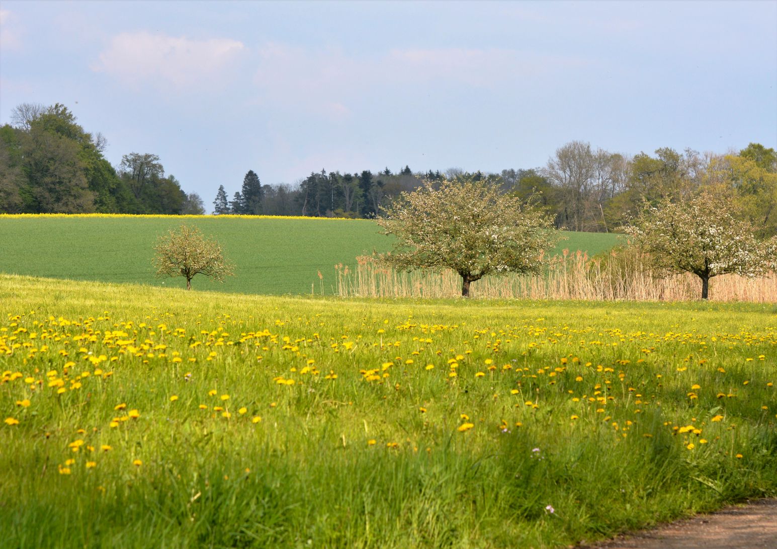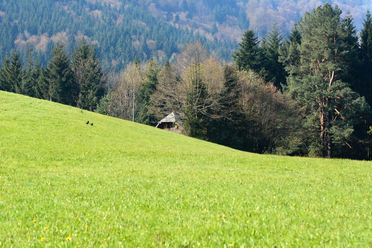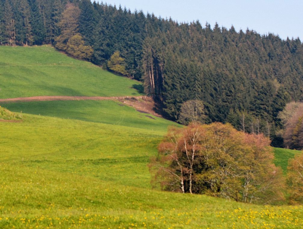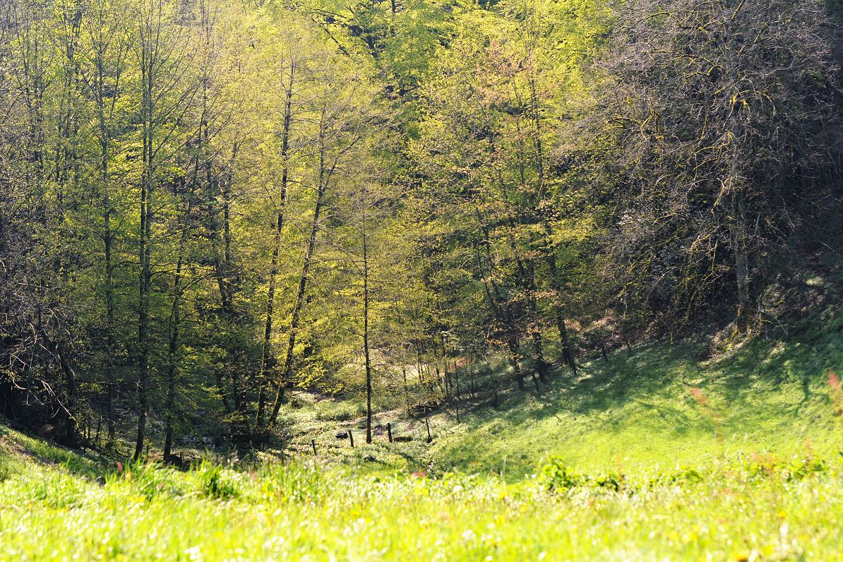 Das ist so eine Wiese, in deren Mitte Wasser runterläuft. Ich weiß, schlecht zu sehen . Aber das ist so, da läuft ein Bach her-
