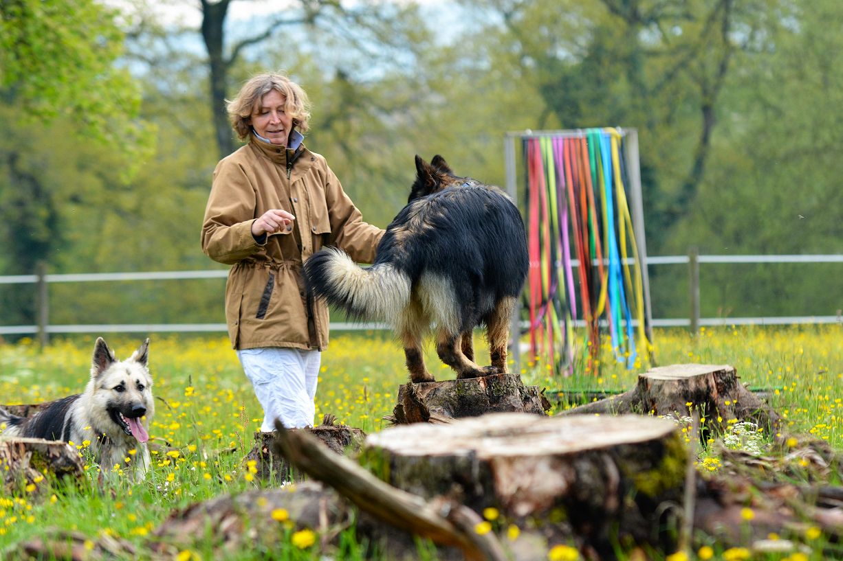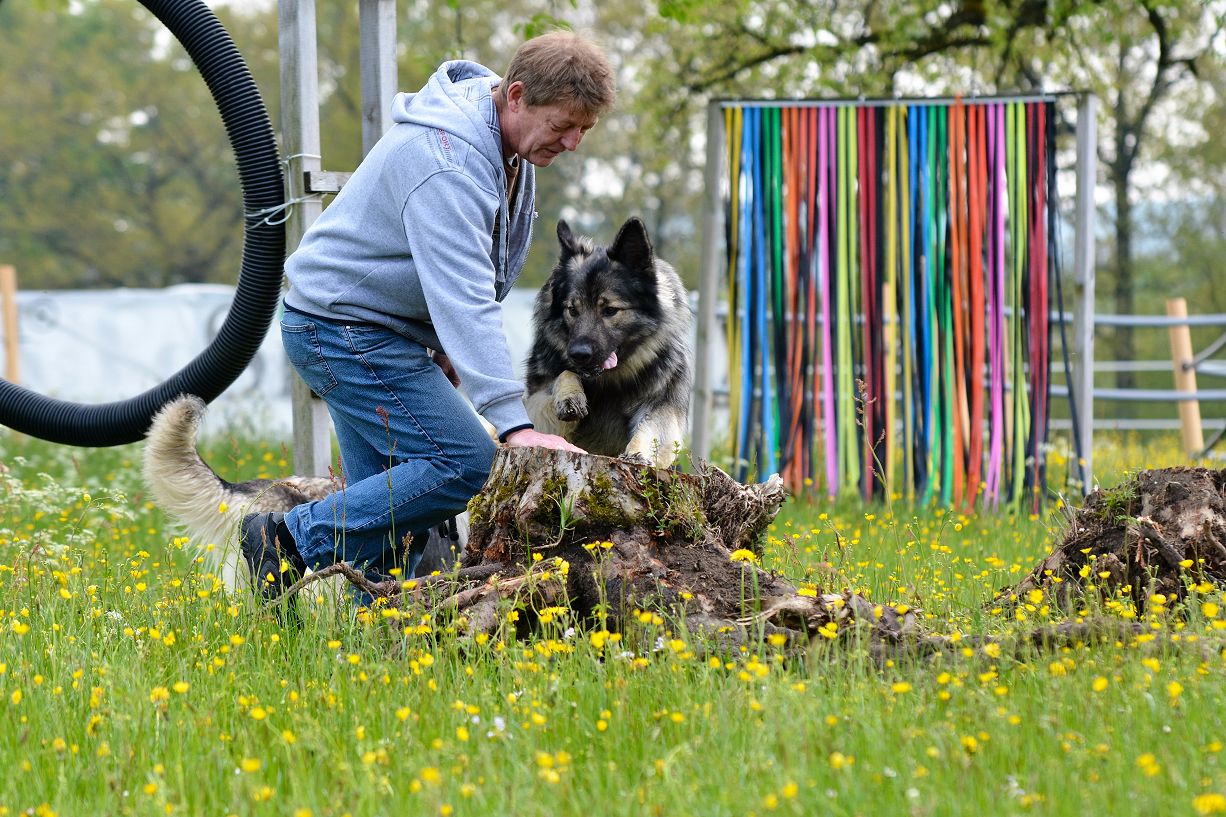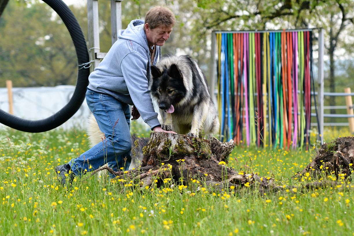 Doris zeigte uns den Pferde/Hundeparcour