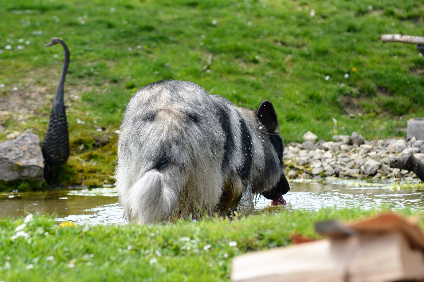 Bei Doris im Garten musste Nazar sich zuerst einmal danebenbenehmen und in den Teich hopsen