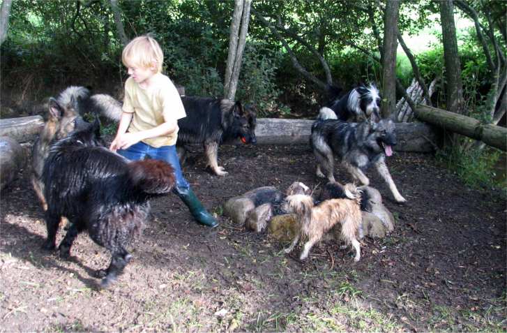 Die Jungs zergelten mit den Hunden um ein Seil und um die Bälle, alle waren pottdreckig und hatten viel Spaß an dem wilden Herumgetobe