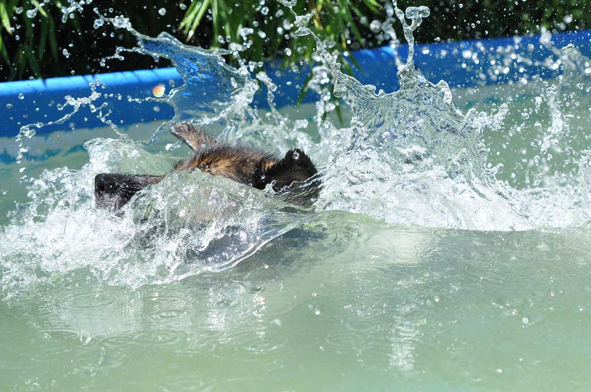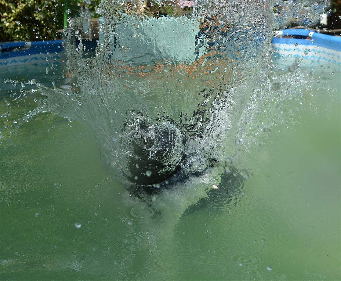 Lexa ist irre mit dem Wasser, sie taucht kopfüber und man muss sie wirklich nach einer Weile rausrufen, sie würde den ganzen Tag drin bleiben.