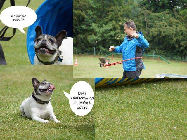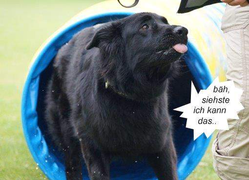 Wie jetzt... nix rennen dürfen? ... ich soll mit Frauchen über Stangen hüpfen???