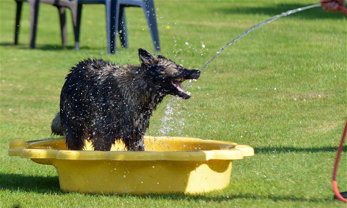 Frühmorgens in Marl auf dem Hundeplatz. Brigitte hatte uns den Hundeplatz vermittelt, er liegt mitten im Wald, hat alles was man irgendwie brauchen kann, Vor allem ein Vordach, weil.... anscheinend können wir unser Sommerfest umtaufen.. in Regenfest!!! Ohne Regen haben wir bisher gar kein "Sommerfest" hingekriegt. So auch dieses mal, vormittags bedeckt, dann Regen, aber .... ab 13 Uhr endlich ... gnadenlos Sonnenschein!