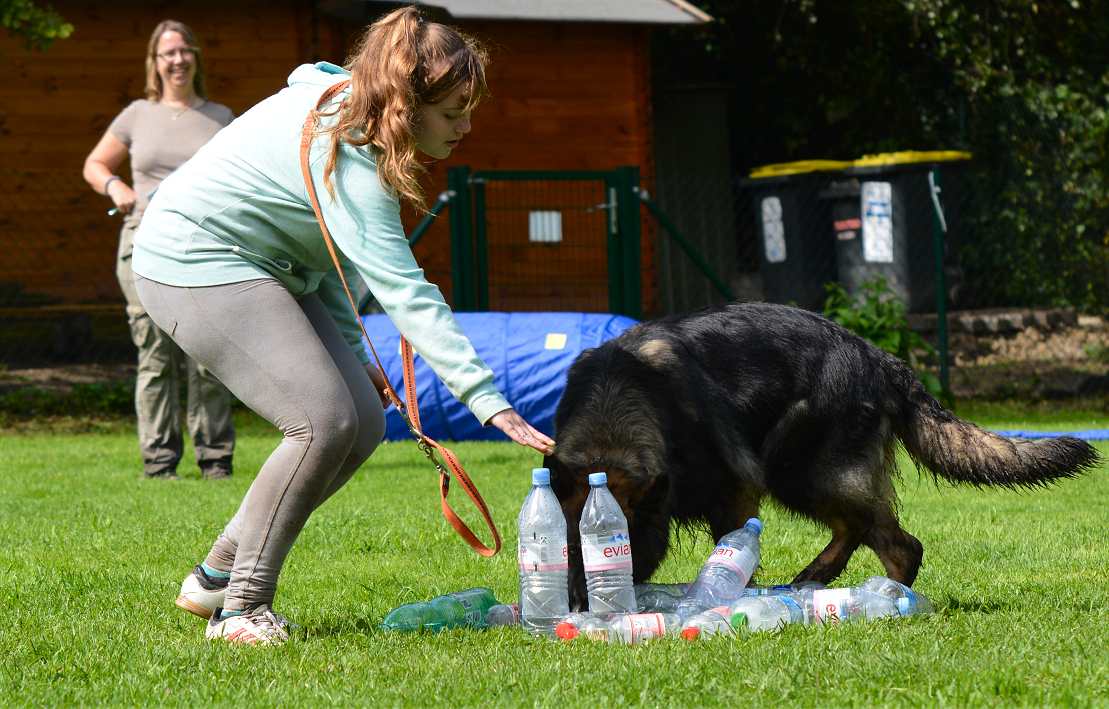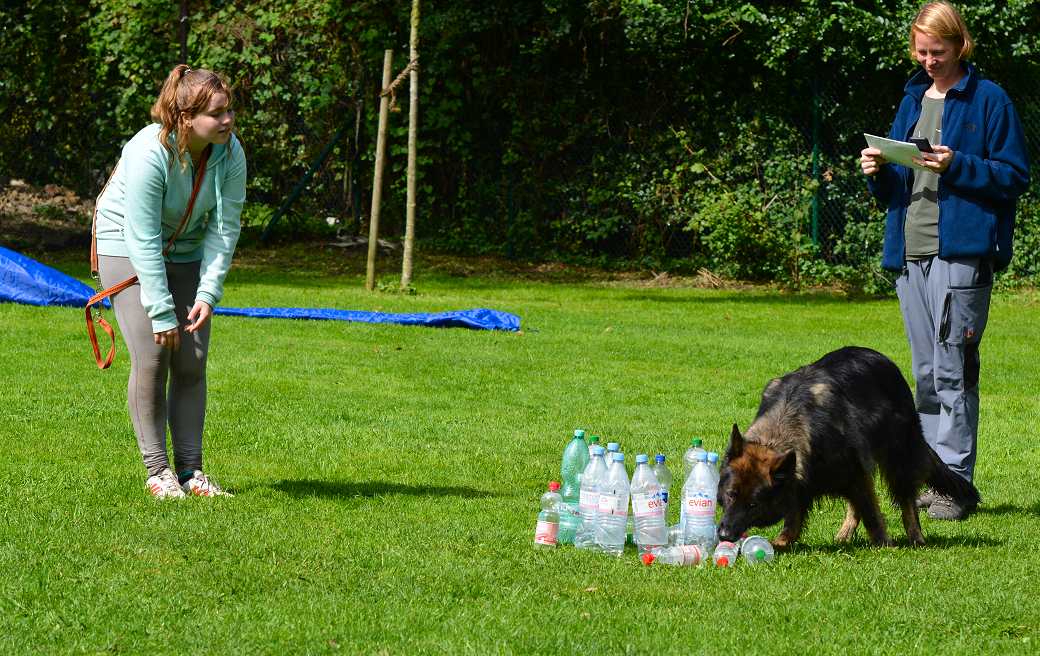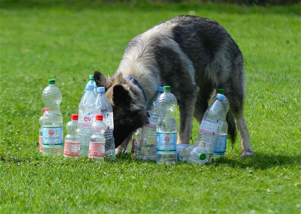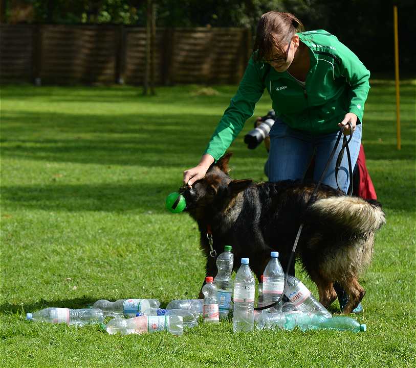 Hier war anscheinend die schwierigste Station... Flaschen umwerfen .. und da konnte man sofort die vorsichtigen Hunde von den Rüpeln unterscheiden :-)