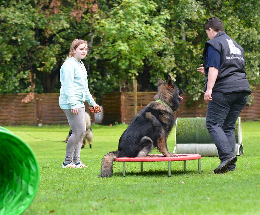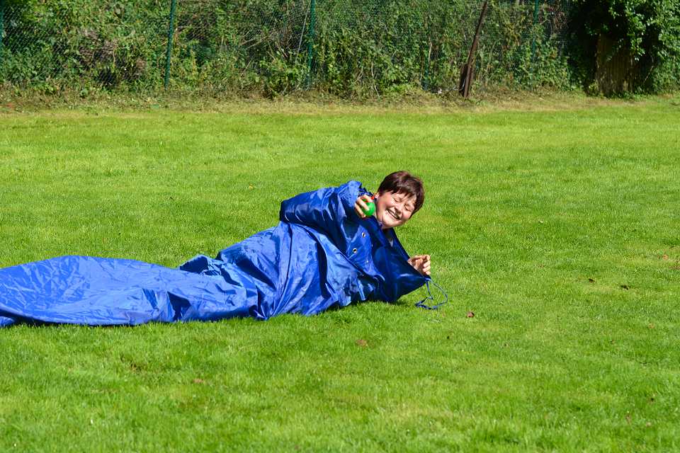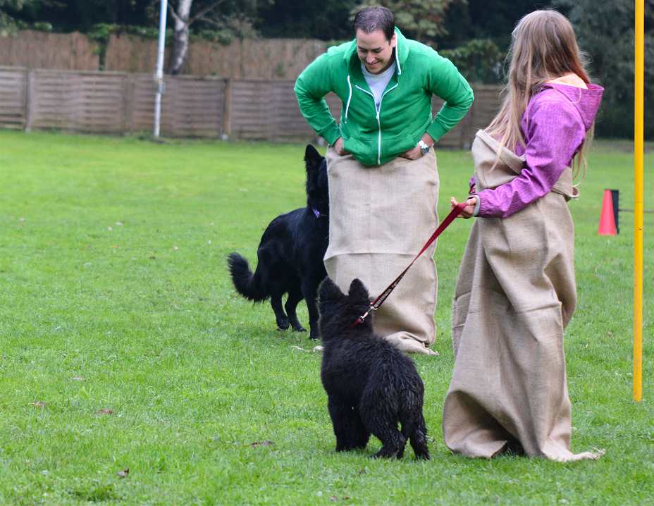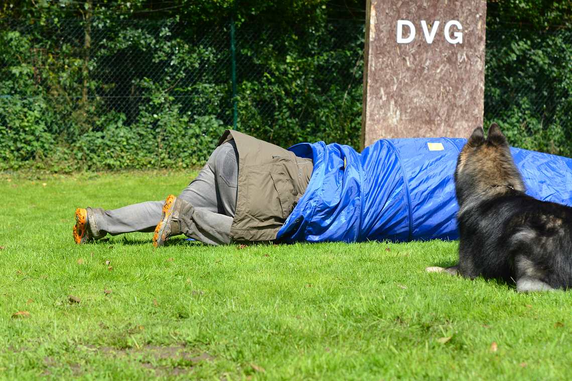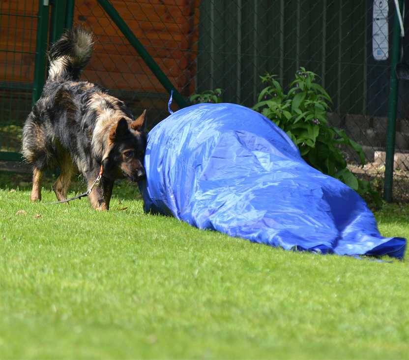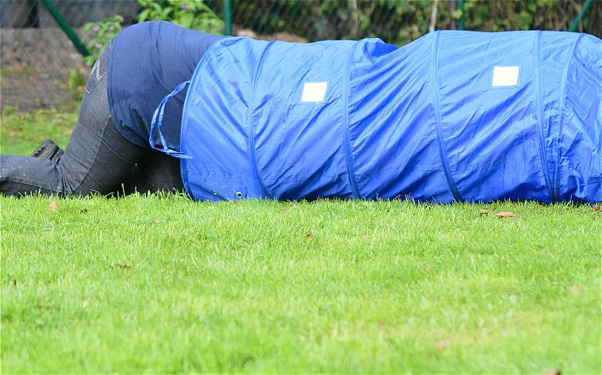 Noch schlimmer ... der Tunnel.... Nicht Hund, sondern Mensch musste durch.. Aber der Tunnel hatte einen Sack und alle verhedderten sich kolossal.. Nicht wirklich einfach.. aber sehr lustig :-)