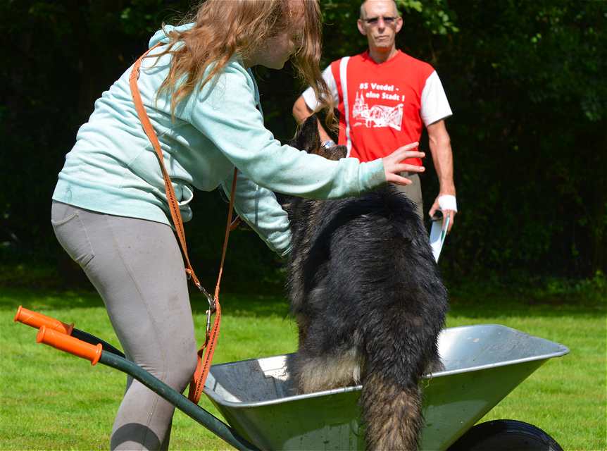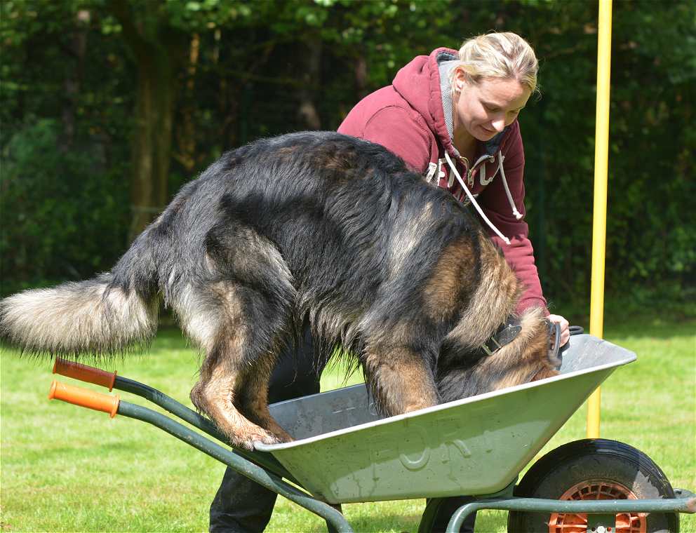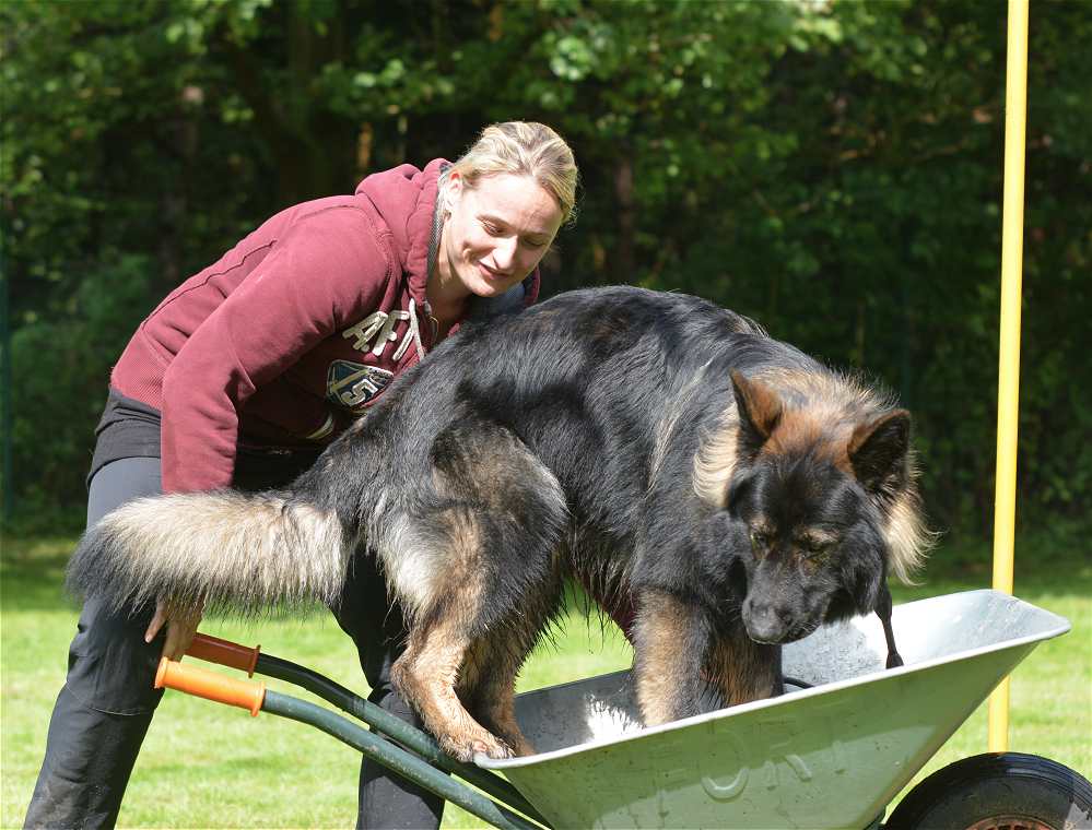 Ganz gemein war die olle Schubkarre.. Ja.. setzt euren Hund mal in die Schubkarre und fahrt mal 50 mtr.... MIT Hund versteht sich :-)