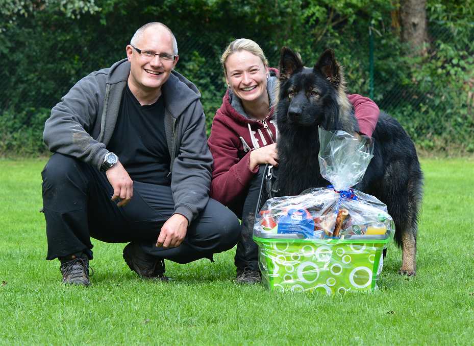 Dann gab es noch Preise für den ältesten Hund und die weiteste Anreise.. Die da waren .. Schweiz, Bayern, Belgien, Holland ... Den 25 Euro Wertscheck gewann Vanessa mit Joy und der älteste Hund auf dem Fest war Akasha mit Thomas