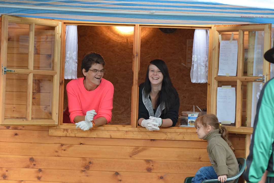 Nachdem wir mit unserem Hunderennen fertig waren, hörte es prompt auf zu regnen und die Sonne kam wieder raus. Also ging es jetzt zum gemütlichen Teil.. sitzen, quatschen, Kaffee trinken, Bauchfleisch und Kuchen essen, in der Reihenfolge und erzählen. Derweil liefen die Hunde noch auf dem Platz herum aber fast alle nur noch mit halber Kraft :-)