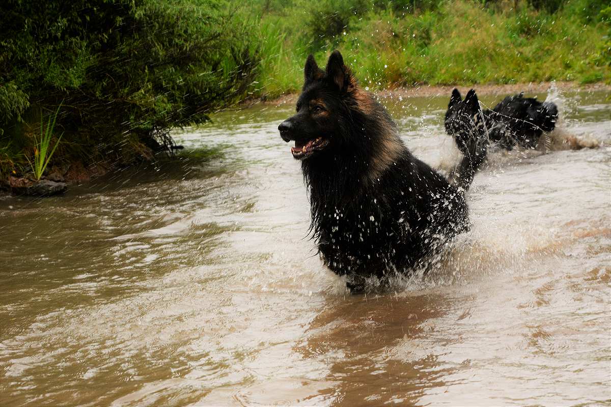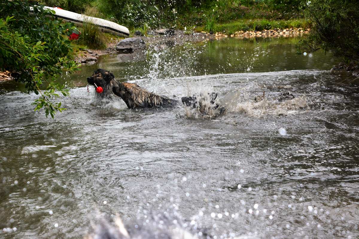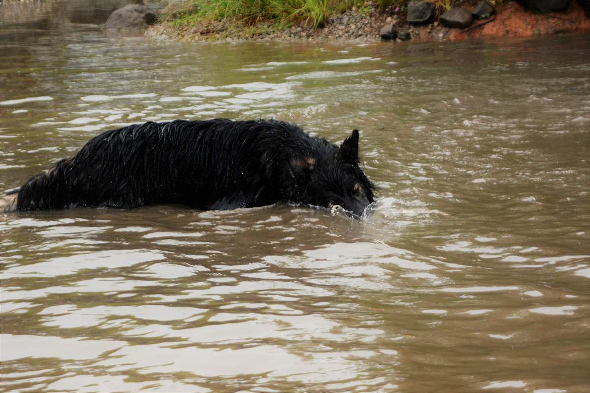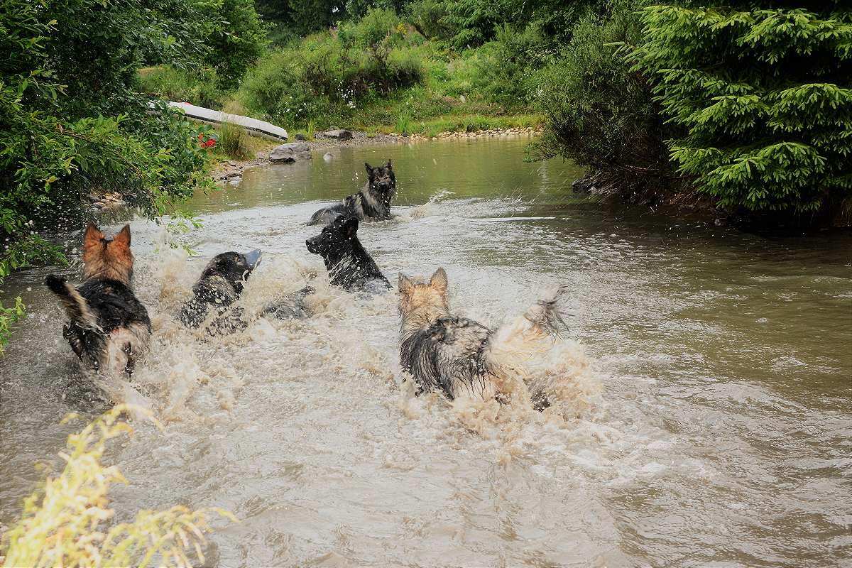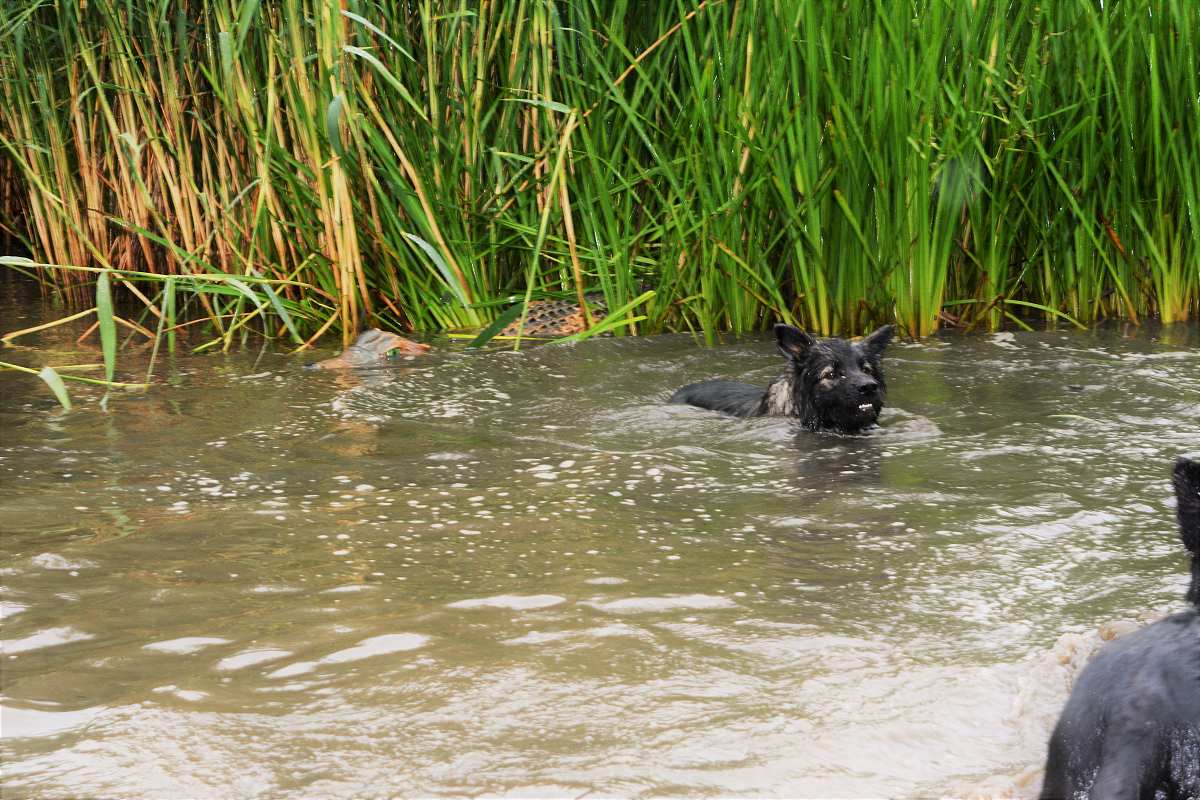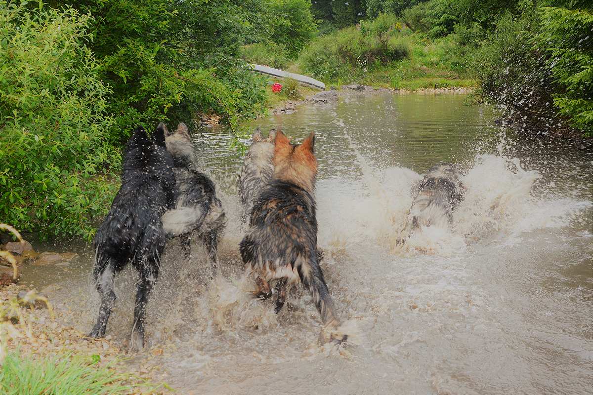 Der Teich war trotz des Dauerregens ein Highlight für die Hunde und ein Spaß für alle. Wir waren ja eh schon nass, da war es egal ob noch mehr nass von unten. Trotzdem das ich unzählige Fotos gemacht habe, und kladdernass war, ist die Ausbeute echt Mist, was habe ich mich über mich geärgert. Blitz drauf und nicht damit umgehen können... :-( Kruzifix noch mal!