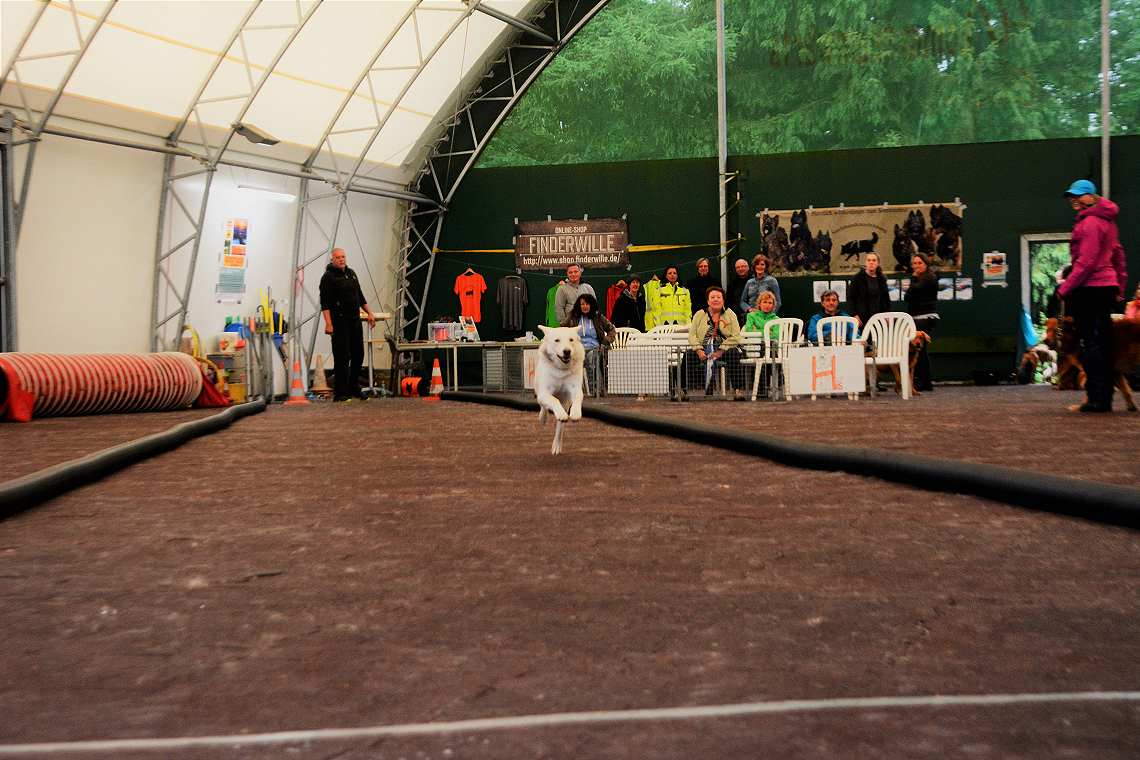 Und somit kommen wir dann zu meinen persönlichen Riesenproblem, bzw. habe ich mich schon genug endlos über mich selber geärgert. Wollte ich es doch besonders gut machen, ... suche mein Blitzgerät raus, so ein ziemlichen Trümmer und schon ewig nicht mehr damit fotografiert. Stelle dann auch noch fest, das das Akku vom Fotoapparat auch nicht mehr irre viel Belastung aushält, und mache mal eben schnell ganz viele Fotos.... natürlich mit Blitz, weil.. Wetter schlecht, kein gutes Licht und überhaupt ist man ja die Professionalität in Tüten und kann ja auch mit dem Blitz auf der Kamera umgehen. Das man dann wohl auch mal ne andere Blende nehmen sollte, und überhaupt mal so gucken sollte, wie die Bilder so aussehen, neee... dafür hat man keine Zeit und nötig ist das auch nicht!!! :-( Außerdem hat man auch noch wenig Akku und man muss dann nur schnell Bilder machen solange der Akku hält. Nachdenken, und vielleicht mal nach draußen gehen, und den einen oder anderen Hund mal fotografieren und schauen wie es dann auf dem Foto aussieht, braucht man auch nicht! :-( Hört auf ... ich krieg die Krise, nicht nur das es geregnet hat auf Teufel komm raus, sind auch alle Fotos die drinnen gemacht wurden und die meisten die ich draußen gemacht habe, schlicht und ergreifend....Schrott!!! Tut mir echt leid, für die Leute die sich drinnen auf die Fotos von unserem Hunderennen gefreut haben, leider sind genau diese Fotos gar nichts geworden, noch nicht mal annähernd. Nächstes mal... ok... bei strahlendem Sonnenschein und draußen, statt in der Halle... Obwohl .. ohne die Halle, was hätten wir da nur gemacht!?