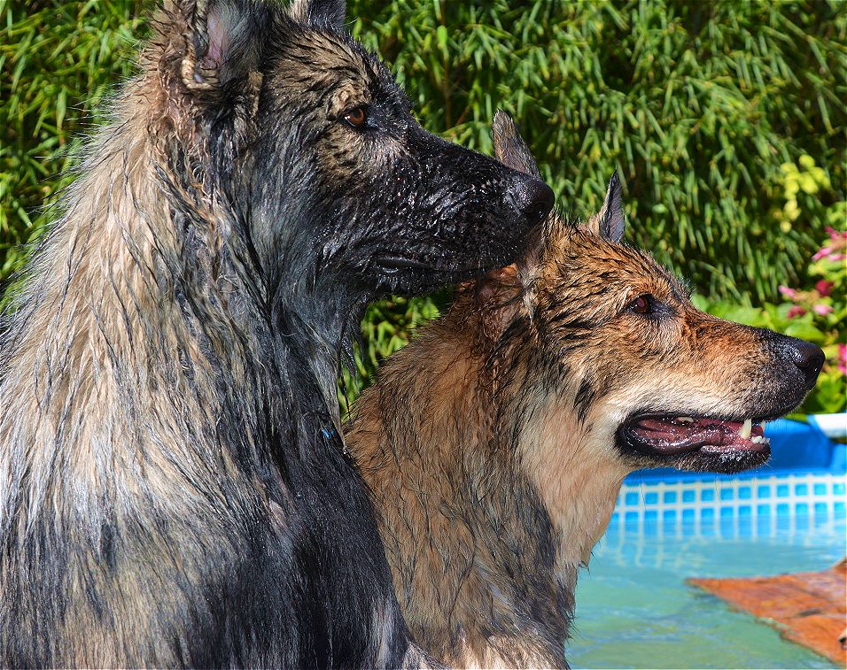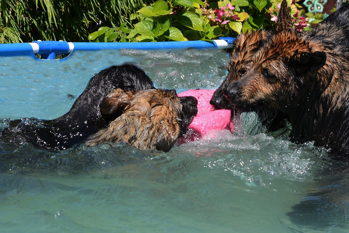 Natürlich habe ich noch ein paar Bilder, Anja und Uwe sind ja schon am Donnerstag bei uns gewesen. Und wir haben unseren Hundepool. Alle Hunde haben kein Problem miteinander, auch nicht auf dem eigenen Grundstück. Deshalb schaut mal :-)