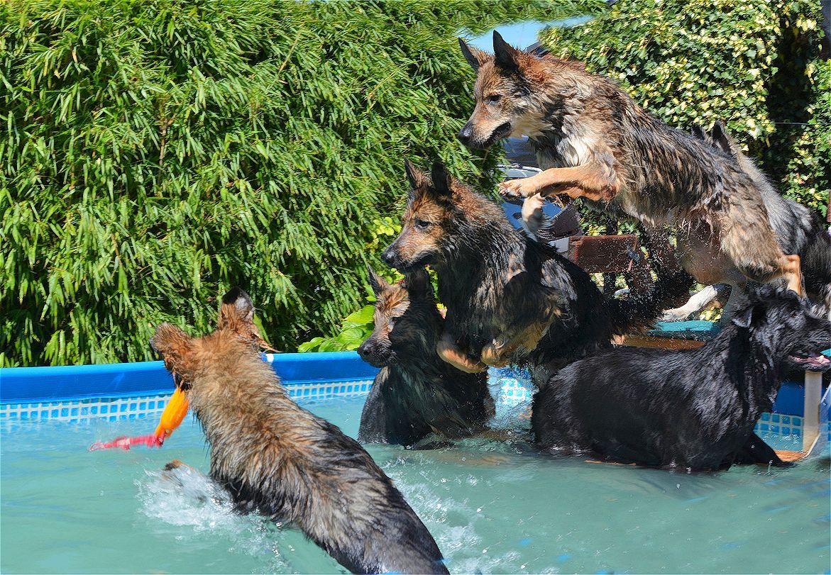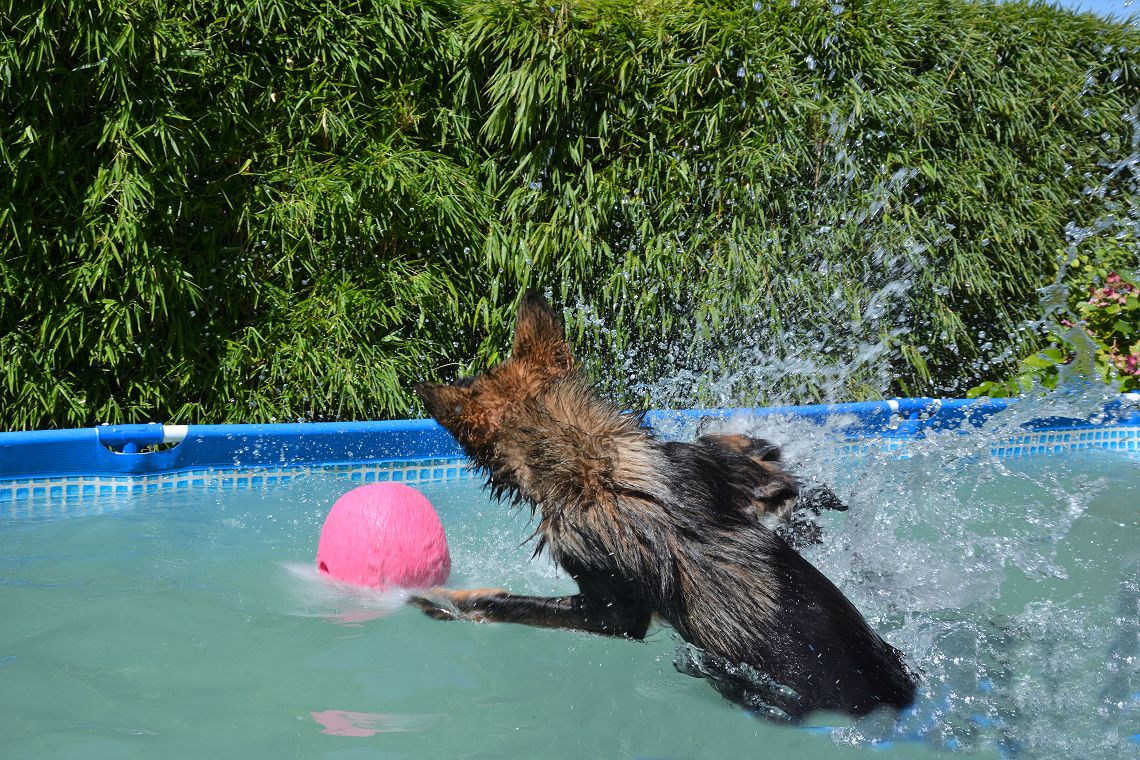 Pool voll, echt frequentiert und alle Hunde wollten zuerst rein!