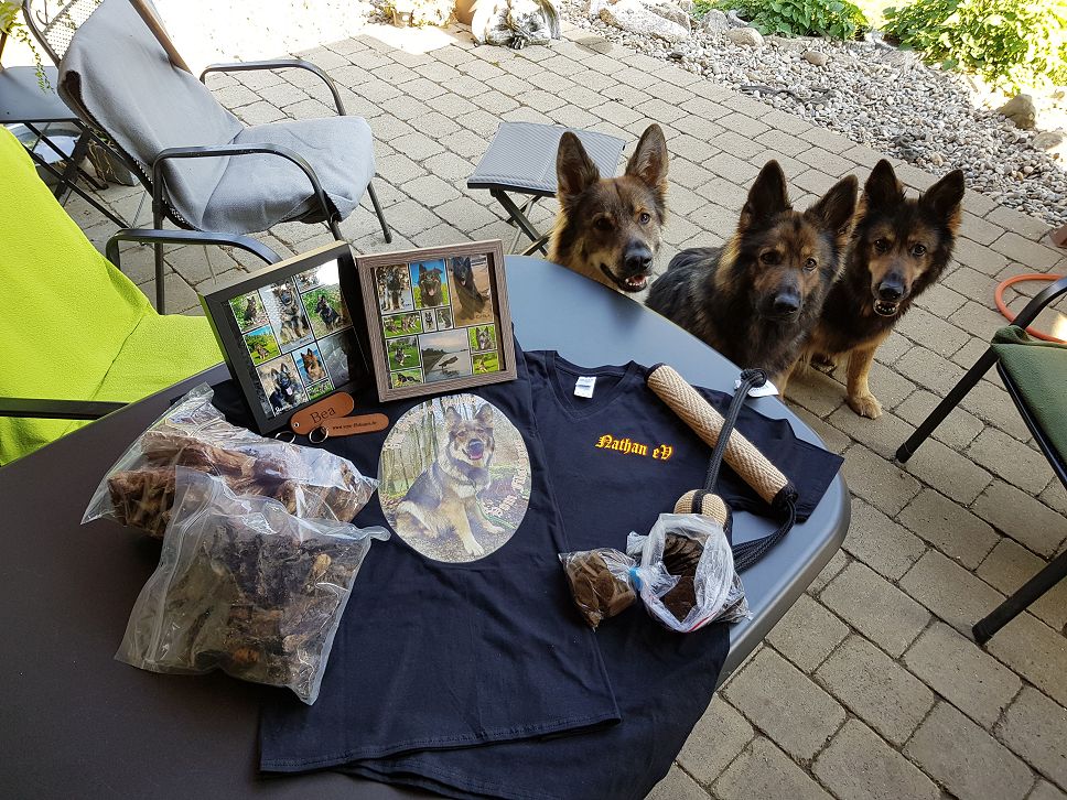 Richtig gute Dry-Beds waren dabei und zudem coole Halsbänder, Bälle aus naturbelassenem Sisal sowie Bauchtaschen mit vielen Möglichkeiten für Handy, Schlüssel, Bälle und diverses Hundezeugs. Schlüsselanhänger mit Namen und richtig schöne Bilderrahmen runden das ganze ab.