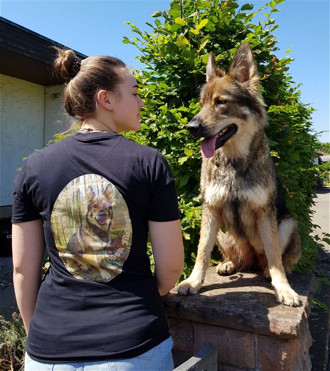 Diese Hündin ist ein Blickfang. Größe und Ausdruck... da stimmt alles. Man bleibt unwillkürlich stehen und schaut sie an. Sie ist wirklich traumschön! Fell zur Zeit nicht, aber keiner der Hunde hat jetzt im Moment noch Haare!