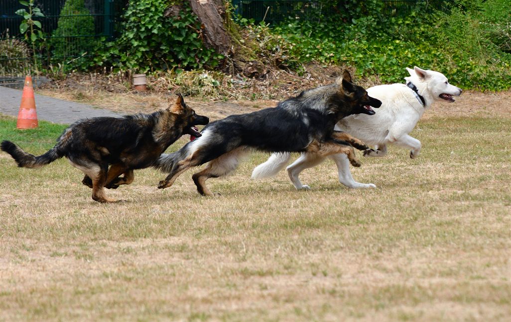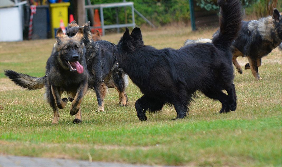 Die Hunde hatten bevor die meisten Besucher kamen, wirklich Spaß miteinander, vertragen war kein Thema. Das klappt immer und es gibt nichts schöneres als einen RIESEN Haufen freilaufender und miteinander spielende Schäferhunde.