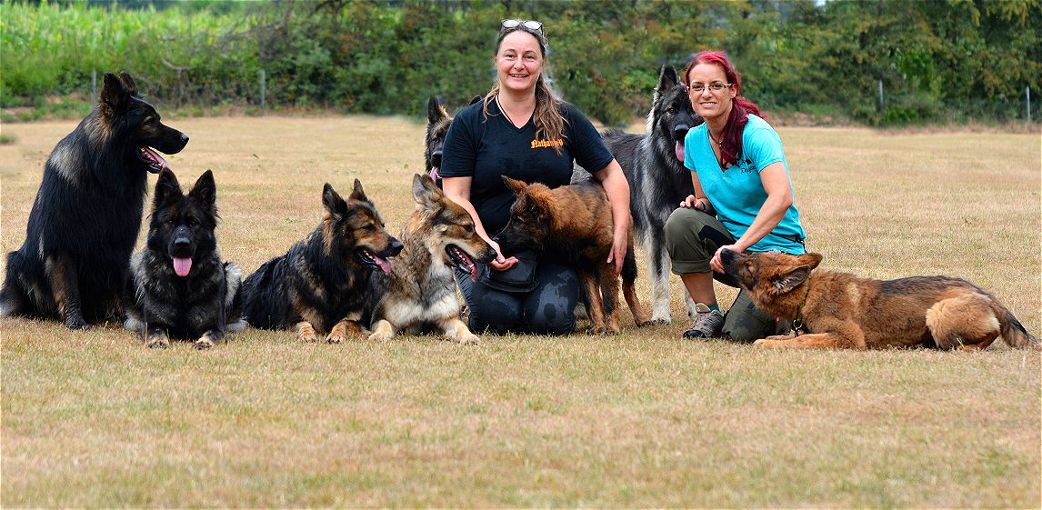Dunja und Anja und ...ein paar Hunde von links Grizzly, C-Jay, Yuna, Shaya, hinter Anja ist Medusa, dann ein Shayakind, dann Bär hinter Dunja, und Dragon !