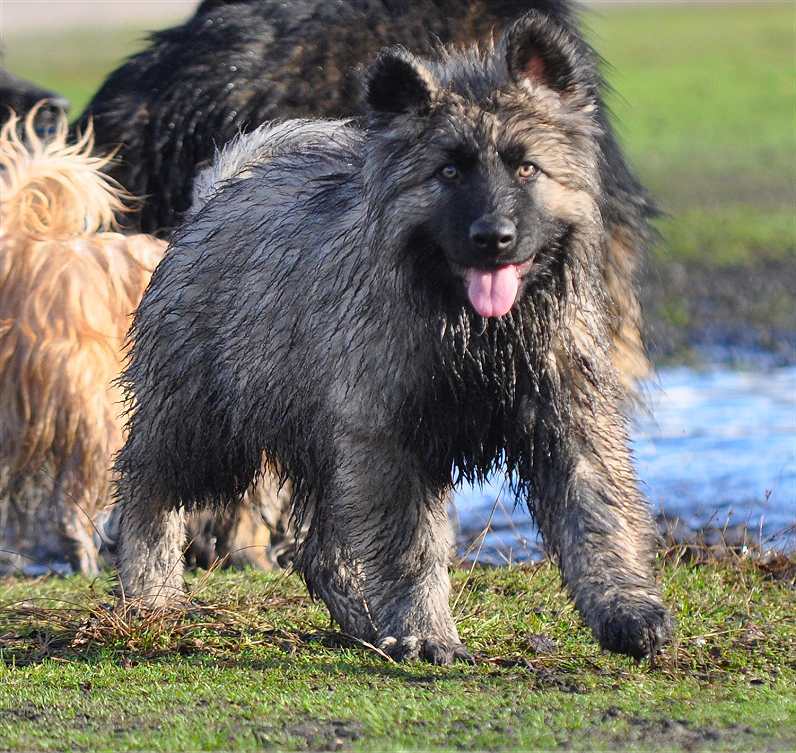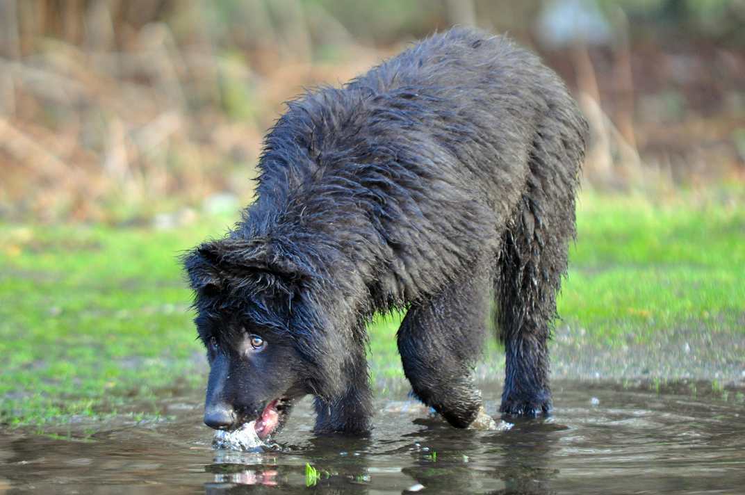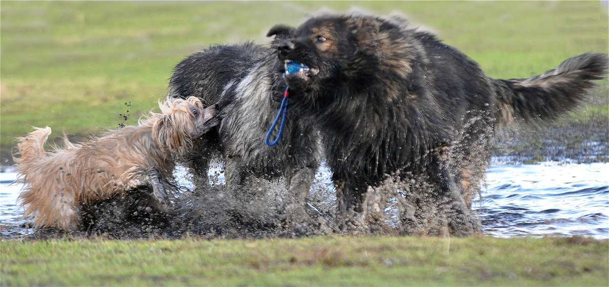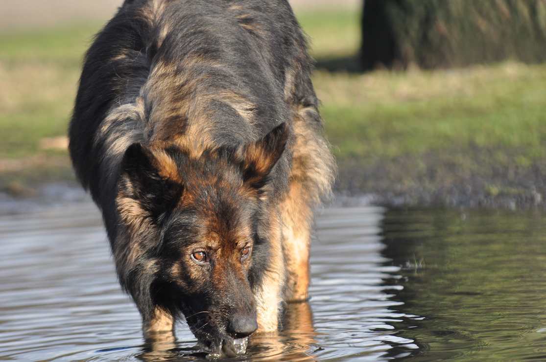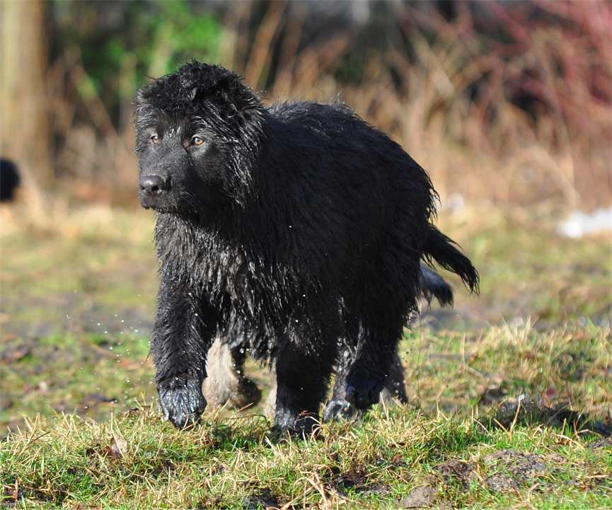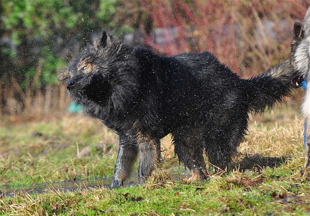 Wotan stellt sich pflichtschuldigst auch einmal in eine Pfütze .. aber aufgrund seines Alters beteiligt er sich nicht mehr an den wilden Spielen der jungen Generation