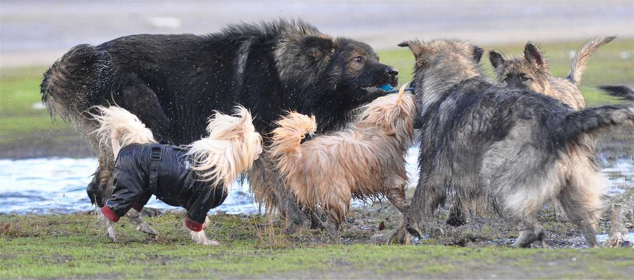 Februar..... 5 Grad Regen von oben und Matsche pur!!! Mir wurde zugetragen, das ich ja schließlich niiieee dreckige Hunde oder abgehaarte Hunde zeige :-) Das hier ist nun eine "offizielle Warnung" an alle die gerade noch überlegen... einen Hund haben zu wollen :-) Einer alleine macht sich in der Regel nicht so dreckig, aber.... viele zusammen.... die zudem Spaß haben am gemeinsamen herumtoben, und dann noch eine Kana die nach ihren Welpen komplett abgehaart ist.. :-) Ein Nackischäferhund also! Bitte sehr... :-) und das ist (leider) nicht die Ausnahme, so sieht bei dem Wetter da draußen, jeder Hund genauso aus!!!