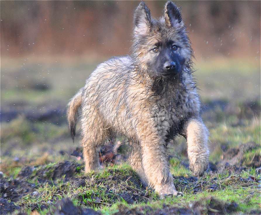 Die Welpen sind jetzt 3 Monate alt, begleiten die Erwachsenen Hunde längst auf den täglichen Spaziergängen, lernen neues dazu und verfeinern Techniken um mich beim Laufen zu Fall zu bringen :-) Ace ist auch zurück, Magda ich danke dir für dein Verständnis mir Ace zurück zu geben. Irgendwie kann ich mich von diesen Welpen nicht wirklich trennen, ich weiß das es verrückt ist, aber diese Hunde sind für mich das non plus ultra und ich möchte sie nicht hergeben. und ..nein... im Moment gebe ich keinen davon ab! Animalhording pur :-) Mal sehen wann es mir zuviel wird, aber Mephisto, schaut ihn euch an, o.k er ist matschig und dreckig auf den folgenden Fotos aber ich finde ihn irre, solch einen Welpen habe ich schon lange nicht mehr gesehen, dasselbe gilt für Ace, diese Augen von ihm haben mich total umgehauen, dazu kommt das unvergleichliche Wesen dieser Hunde, auch jetzt und im dreier Pack sind sie immer noch super händelbar, total auf den Menschen bezogen und lassen sich total einfach lenken. Crash ist das einzigste Mädchen, :-) und darf sich natürlich das eine oder andere rausnehmen. Aber selbst da draußen auf Spaziergängen wie diese, kein Problem, sie kommen auf Zuruf, warten bis andere Leute mit ihren Hunden vorbei gegangen sind und laufen dann mit mir weiter. Komplett easy, und das bei einer solchen Horde.... Aber genug davon, schaut auf die Abschreckbilder eines jeden halbwegs ordentlich angezogenen Mitmenschen... Für einen Normalhundhalter ist das, glaube ich ....Gruselfaktor ... :-) Aber ich habe warmes Wasser im Vorraum und zudem kann ich die Hunde bis sie trocken sind hinten lassen, auf diese täglichen Spaziergänge mit ihnen, möchte ich jedoch auf keinen Fall verzichten. Jetzt aber......