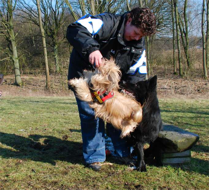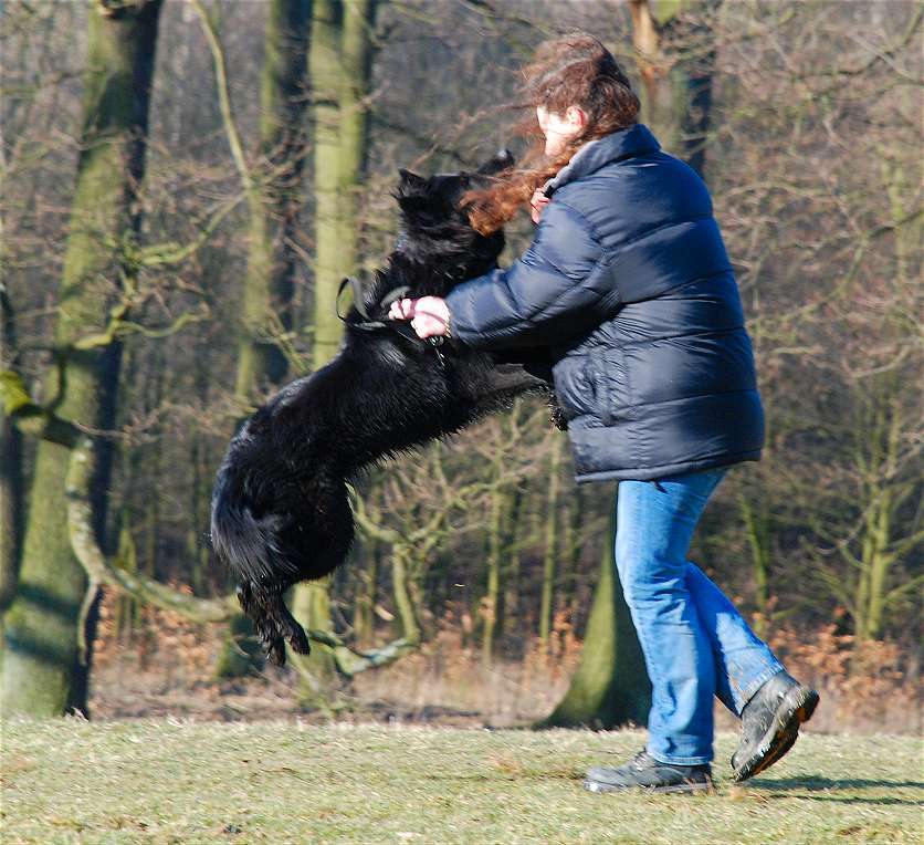 Zwischendurch muss man sich die Füße an Frauchen abwischen, damit neur Matsch auch noch dranpasst!