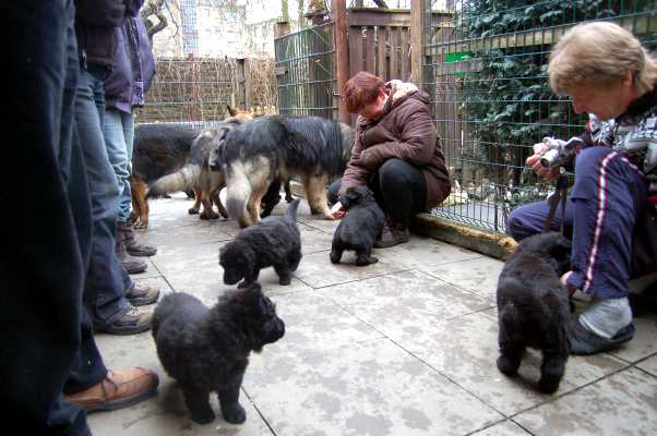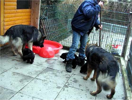 | 8.1.06 Die Babys erkunden nun schon ihre neue Umgebung, nun sind auch die anderen Hunde mit dabei und finden die kleinen einfach nur klasse...Neue Bilder gibt's wenn sie 6 Wochen alt werden. | |