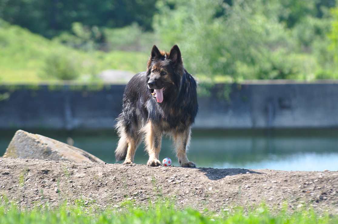 Der Sommer, wir und ... Wotan... Spaziergänge, meist doch kürzer als mit den anderen, in Verbindung mit Wasser und das höchste schlechthin... buddeln.. und mein alter Wotan mittendrin Ich versuche immer ihn ein wenig zu regulieren, er kann nicht mehr schnell, lange und ausdauernd laufen.. aber das Riesenproblem, er glaubt das alles nicht, für ihn ist die Welt ein Karussel die sich um ihn dreht Er ist der große Macher, der Chef und außerdem gehört ihm das Universum. Er ist frech, fordernd, freundlich und furchtbar unhöflich, er ist der Clown, der der sich alles erlauben kann, ist ungehorsam und er glaubt auch daran das es immer so weitergeht. Niemals gibt er auf, den anderen und dem fliegenden Ball zu folgen, er fordert Respekt von den anderen (den bekommt er uneingeschränkt) und führt immer noch .. ganz oben auf seinem Thron .. die Pantherbrigade.
