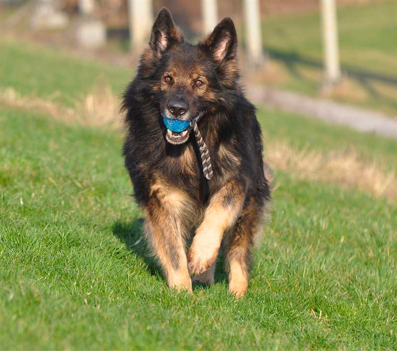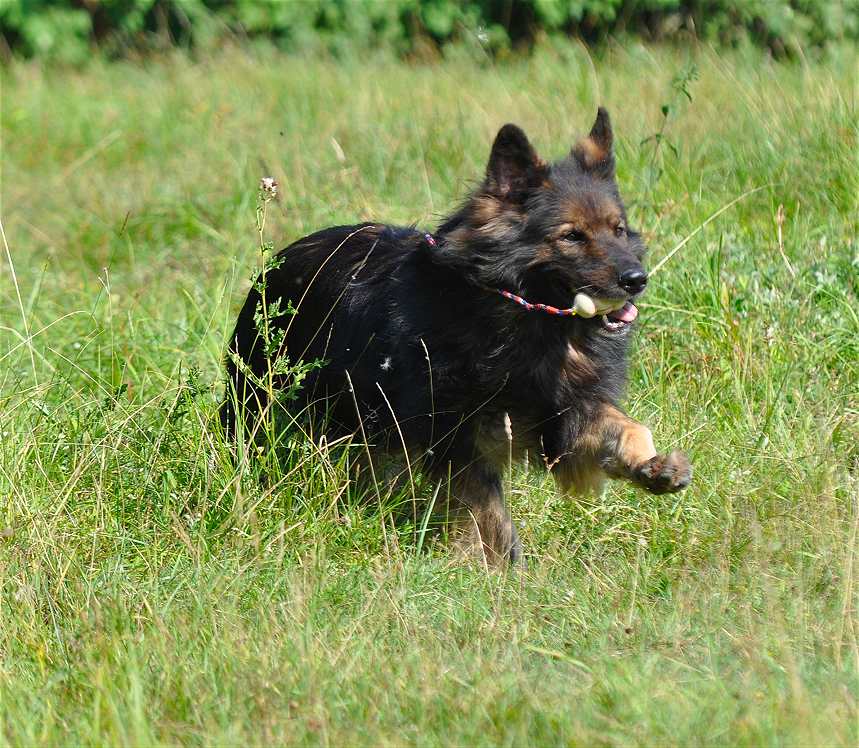 Sein Ball und dabei sein ... und zwischendurch rennt er hinter Grizzly und Kana her, das kann er sehr wohl noch dabei wird dann gemeckert was das Zeug hält,.... mein alter "Schreihals" eben. Wenn man ihn sieht mit den Welpen und den jungen Hunden ... .. Da geht mir das Herz auf!!!