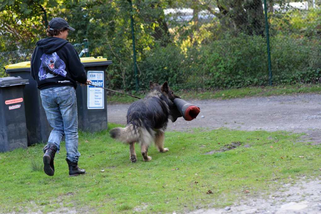 Frech ist er, unglaublich starrsinnig und mit dem Kopf durch die Wand Mein oller Wotan eben! So, bei den nächsten Bildern habe ich super lange überlegt ob ich sie zeige, ich weiß das inzwischen viele Menschen eine Aversion gegen den VPG Sport haben. Meiner Meinung nach oft unberechtigt. Nach wie vor ist dieser Sport für mich die Königsdisziplin, aber das ist ein ganz anderes Thema. Ich mache kein Hehl daraus, das auch wir diese Form des Hundesports betreiben. Wotan hat lange, sehr lange in dieser Sportart geglänzt und viele Erfolge gehabt. Das schönste für ihn war immer der Schutzdienst, aufgrund seines Alters geht er schon lange nicht mehr auf den Hundeplatz, aber auch wenn einige Menschen es nicht nachvollziehen können, ist für Wotan seine alte "Arbeit" ein Highlight in seinem Leben. Als ich die Tage mit Grizz und den anderen zum Hundeplatz wollte, hat Wotan sich strikt geweigert ins Haus zu gehen, er wollte partout in seine Box ins Auto und war nicht zu bewegen dort wegzugehen. Selbst Leckerchen, für die tut er im Moment alles, konnten ihn nicht überzeugen, das Auto zu verlassen. Also.. ich gab auf und Wotan durfte mitfahren, ich finde ja, das es zu anstrengend für ihn ist, selbst nur die ganze Zeit im Auto zu sitzen, rumzubellen, was das Zeug hält und sich aufzuregen. Aber... Wotan gab nicht nach, also hab ich mir gesagt, ok komm mit, und ich bleib halt nicht lange! Auf dem Platz lief gerade der Schutzdienst und mein Wotan saß im Auto und brüllte aus Leibeskräften.. Wir guckten uns alle an. und dann hab ich gesagt... OK aber nur einmal anbeißen lassen, Ärmel ganz tief halten und dann gehen wir wieder...