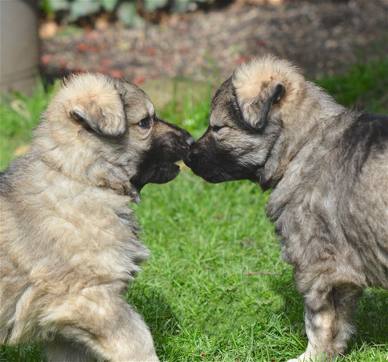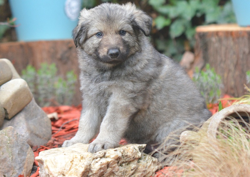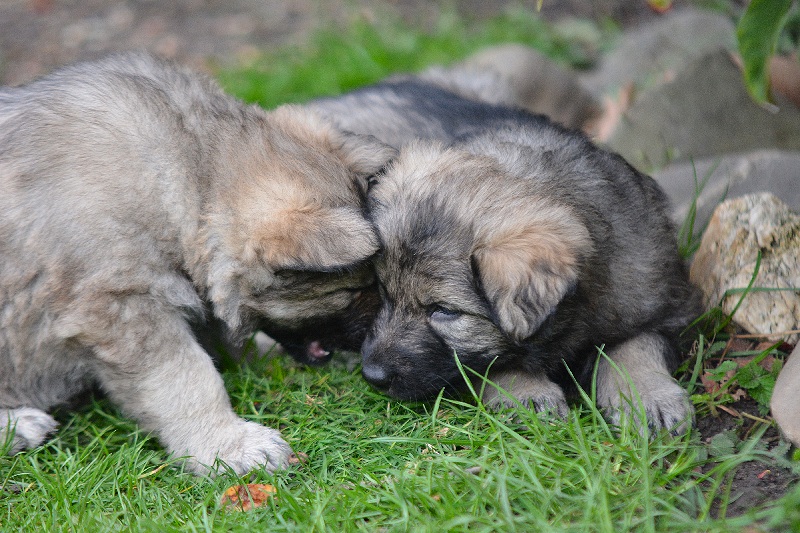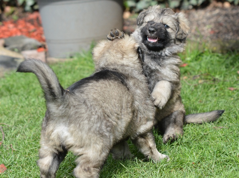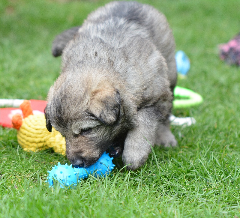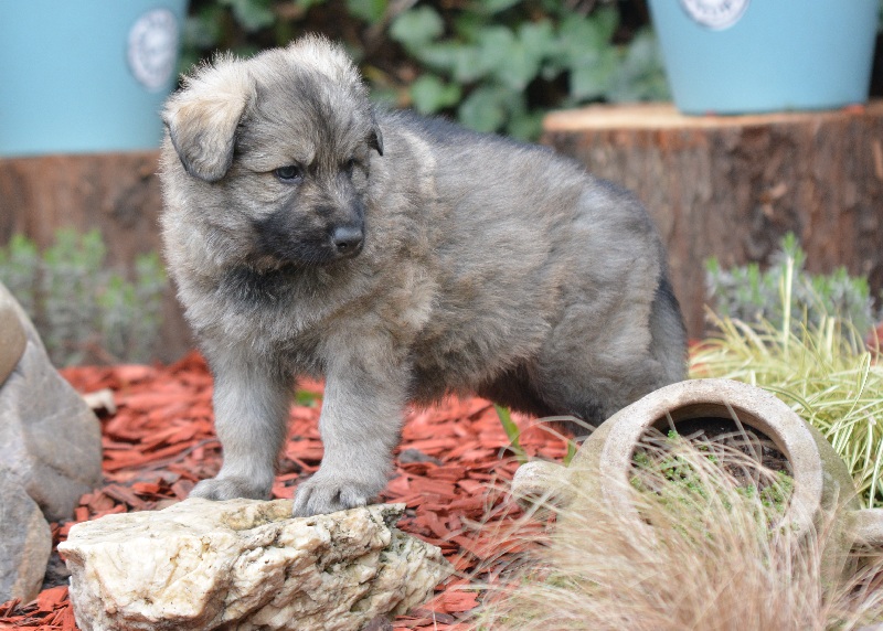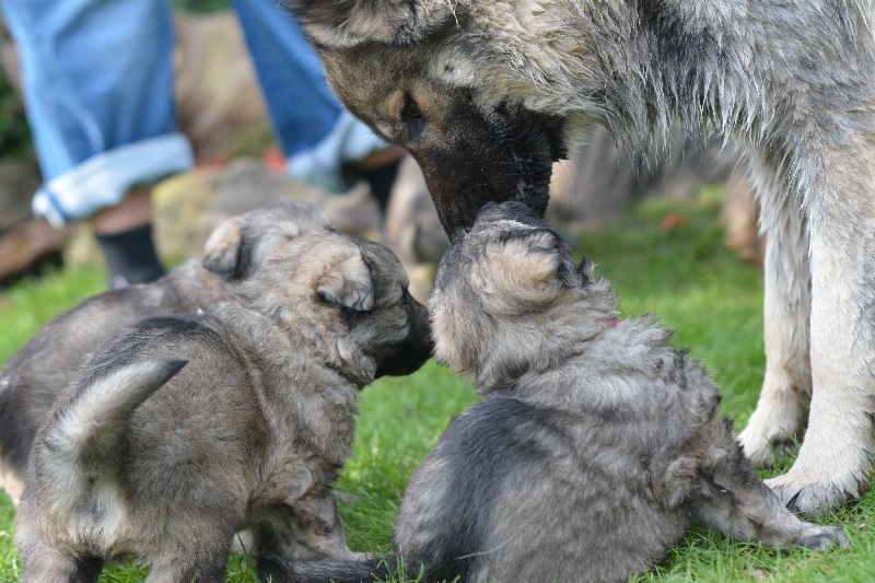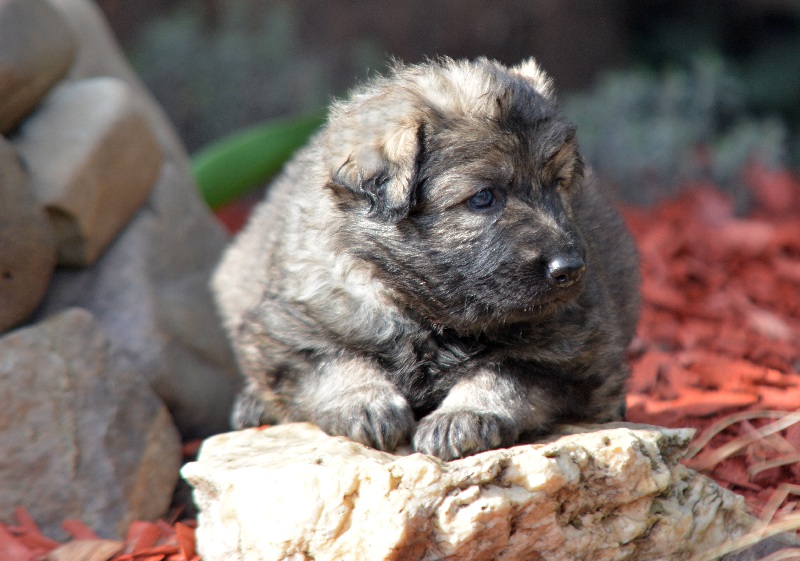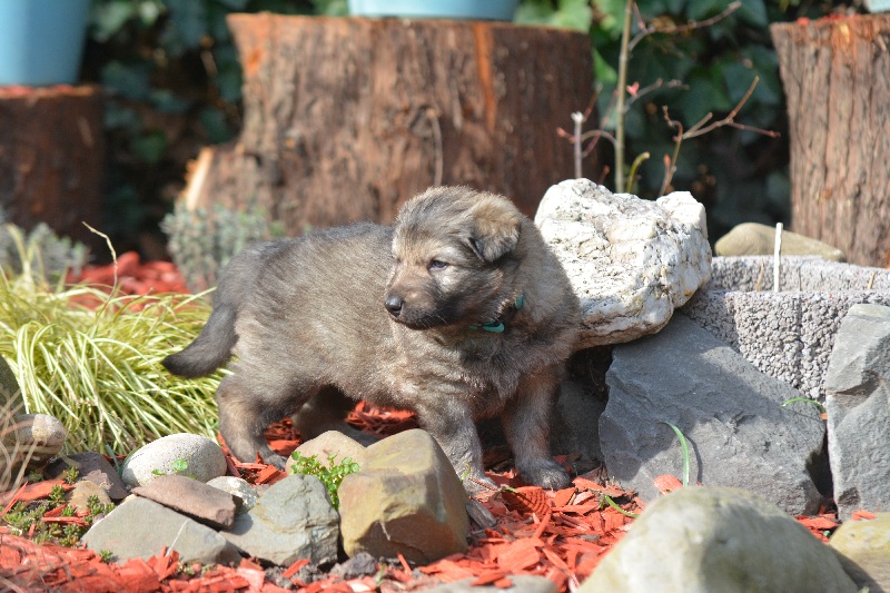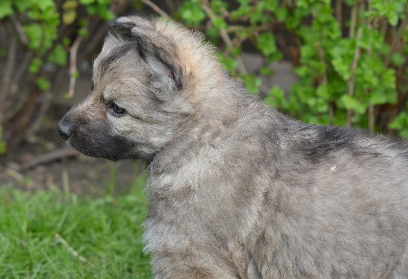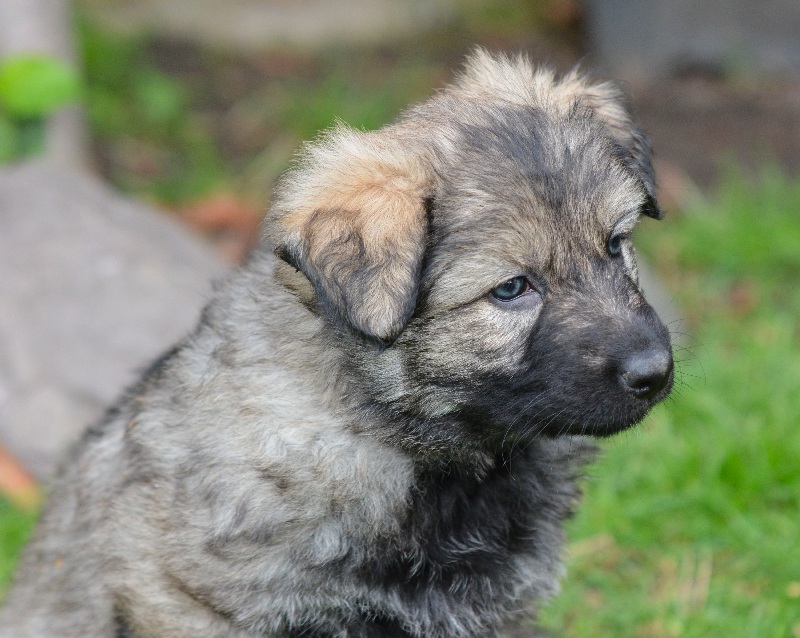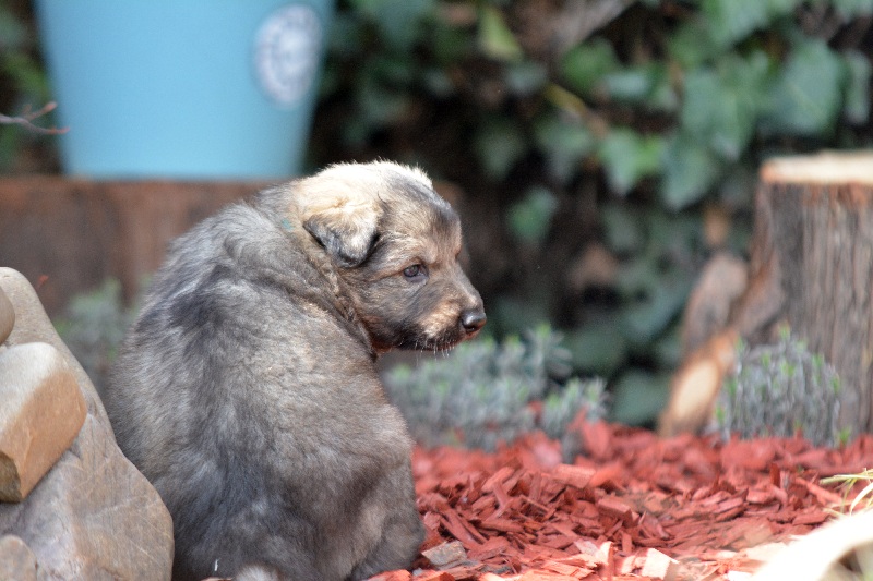 ![]() Spannend hier draußen Die Kleinen entwickeln nun auch schon ihre wolfsgraue Färbung. Das hier ist Yro, er geht zu Angelo, dem Deckrüdenbesitzer. Er hat natürlich einen ganz fehlenden schwarzen Fang, und ist aber auch der kürzeste im Fell. Ich bin selber gespannt wie er sich entwickelt. Da ja alle Babys selbstverständlich langhaarig sind ist es jetzt schon spannend zu sehen das Yro sich von den anderen ein wenig abhebt. |