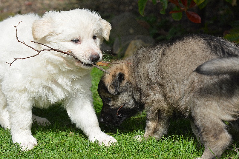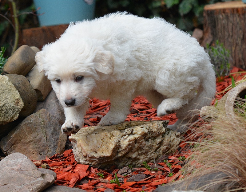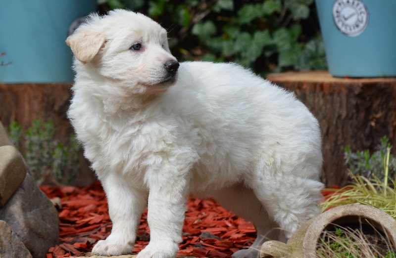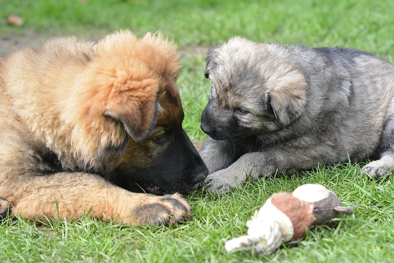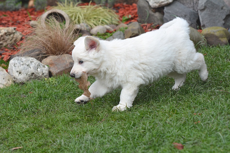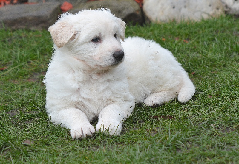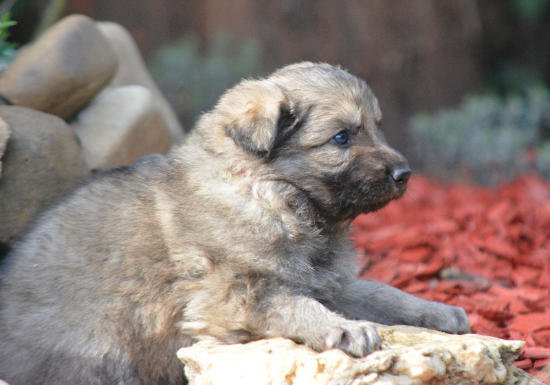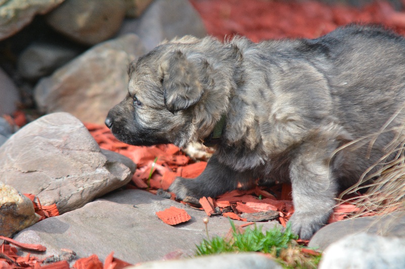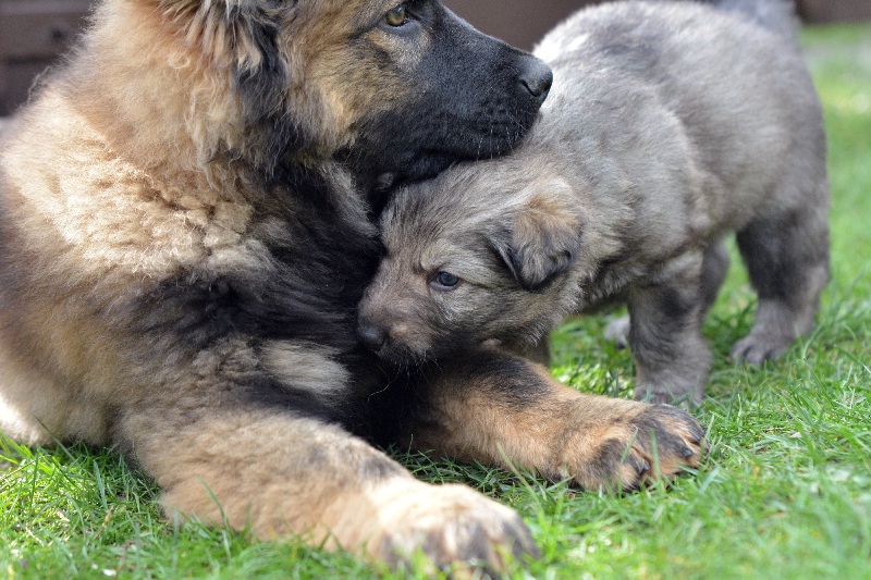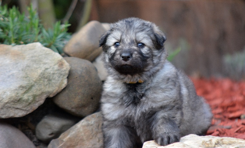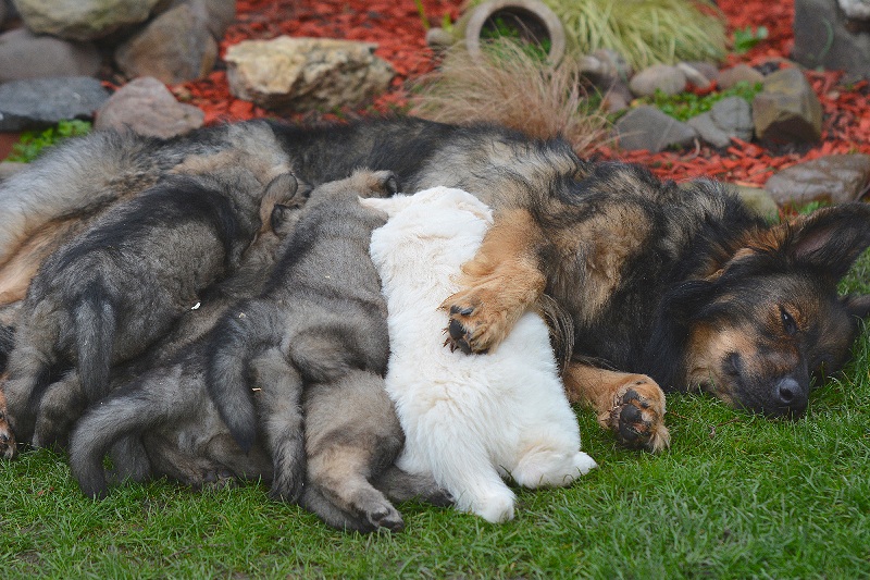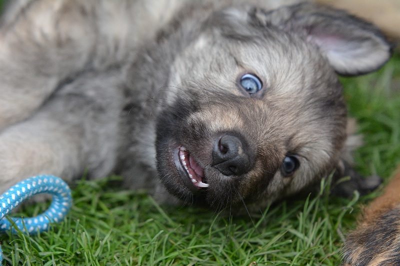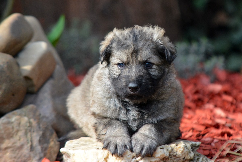 ![]() Spannend hier draußen Die Kleinen entwickeln nun auch schon ihre wolfsgraue Färbung. Das hier ist Yro, er geht zu Angelo, dem Deckrüdenbesitzer. Er hat natürlich einen ganz fehlenden schwarzen Fang, und ist aber auch der kürzeste im Fell. Ich bin selber gespannt wie er sich entwickelt. Da ja alle Babys selbstverständlich langhaarig sind ist es jetzt schon spannend zu sehen das Yro sich von den anderen ein wenig abhebt. |