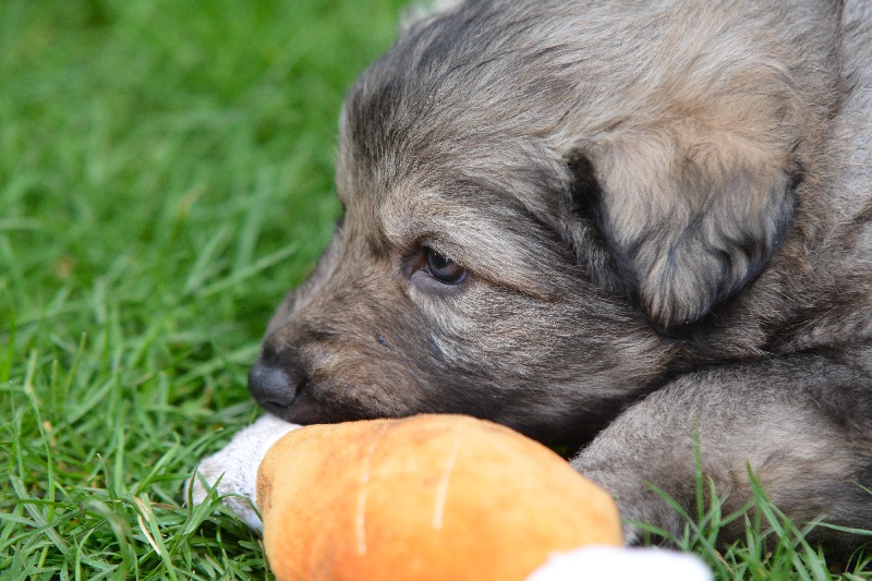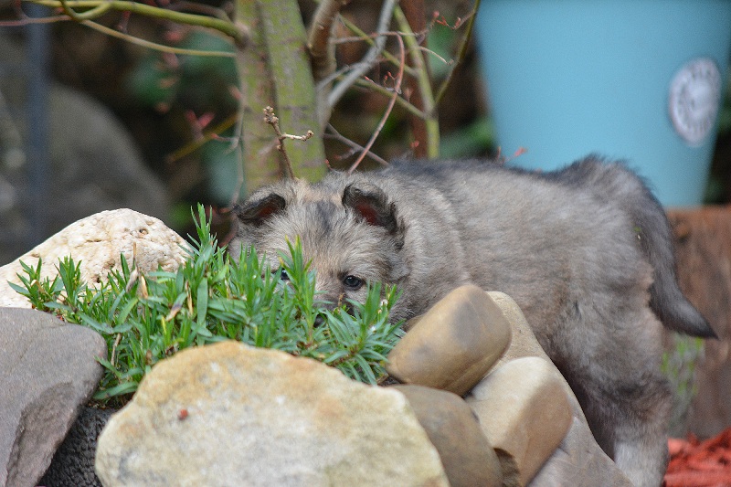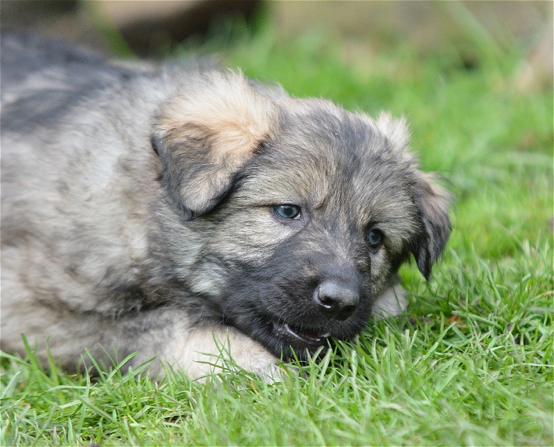 ![]() Zottelchen guckt zu ... Die Welpen haben jetzt schon in ihr wolfsfarbenes Fell gewechselt, bis der erwünschte Wolfsfang richtig zu sehen ist dauert es noch ein kleines Weilchen. |
